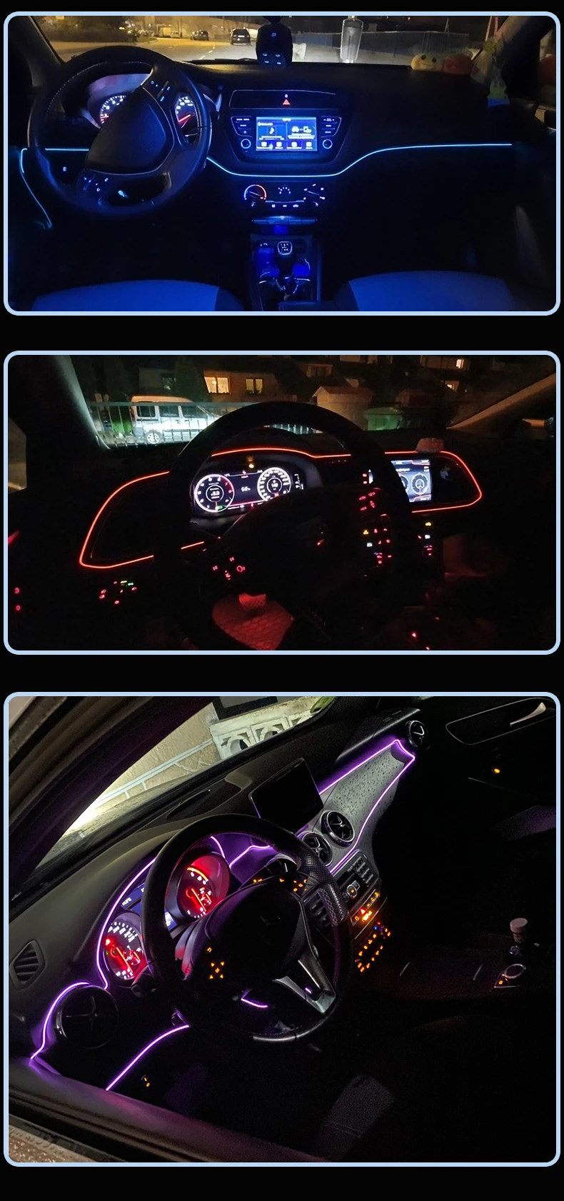 1 м интерьер автомобиля атмосферсветильник молдинги холодная линия провод USBприкуриватель erАккумулятор Чехол декоративная приборная панель консольная лампа