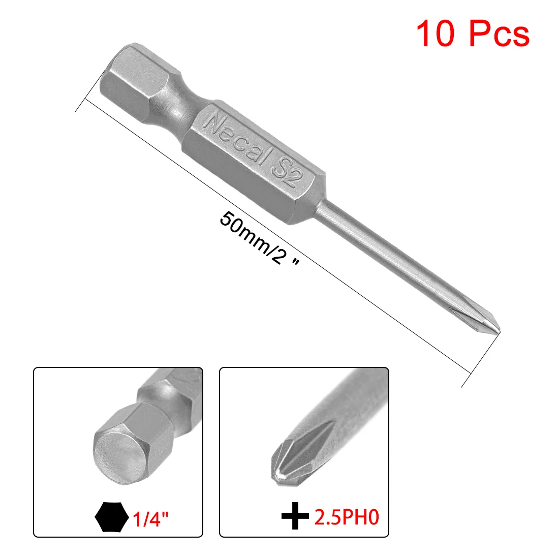 Магнитная отвертка uxcell, 10 шт., 14 дюйма, с шестигранным хвостовиком Phillips, 1,62,5233 мм, PH00 PH0 PH1, S2, насадки для отверток, длина 50 мм