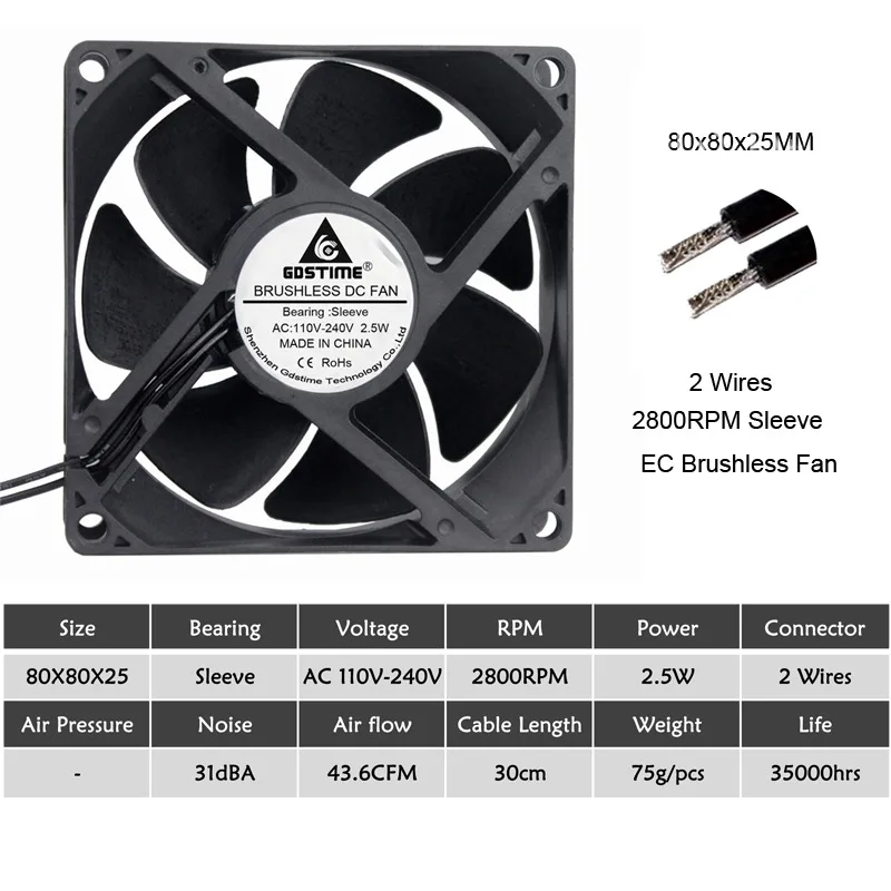 5 шт. Gdstime EC бесщеточный вентилятор 8 см 80 мм 80x80x25мм EC вентилятор двигателя AC 110 в 115 в 120 в 220 в 240 В осевой охлаждающий вентилятор