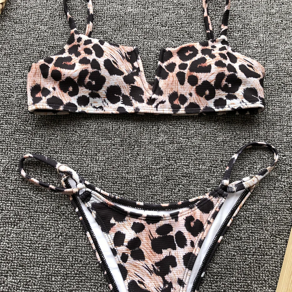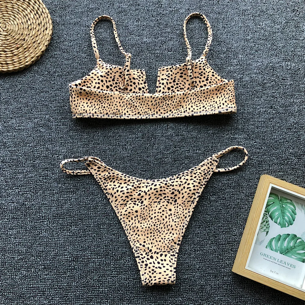 Купальник женский леопардовый OMKAGI, пикантный бикини с V-образным вырезом, купальный комплект с чашками пуш-ап, пляжная одежда, 2019
