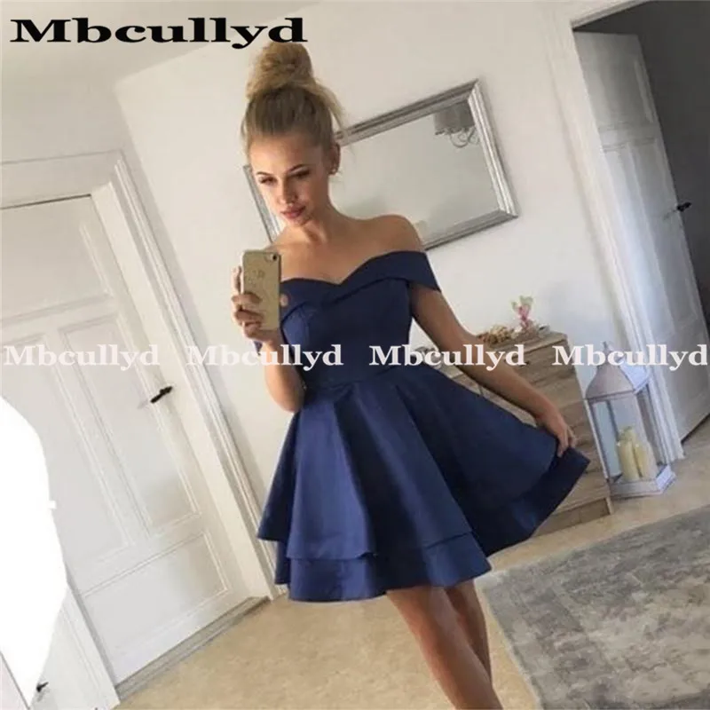 Платье для выпускного вечера Mbcully, атласное короткоеМини-Платье трапециевидного силуэта с открытыми плечами и оборками, без рукавов, для девочек