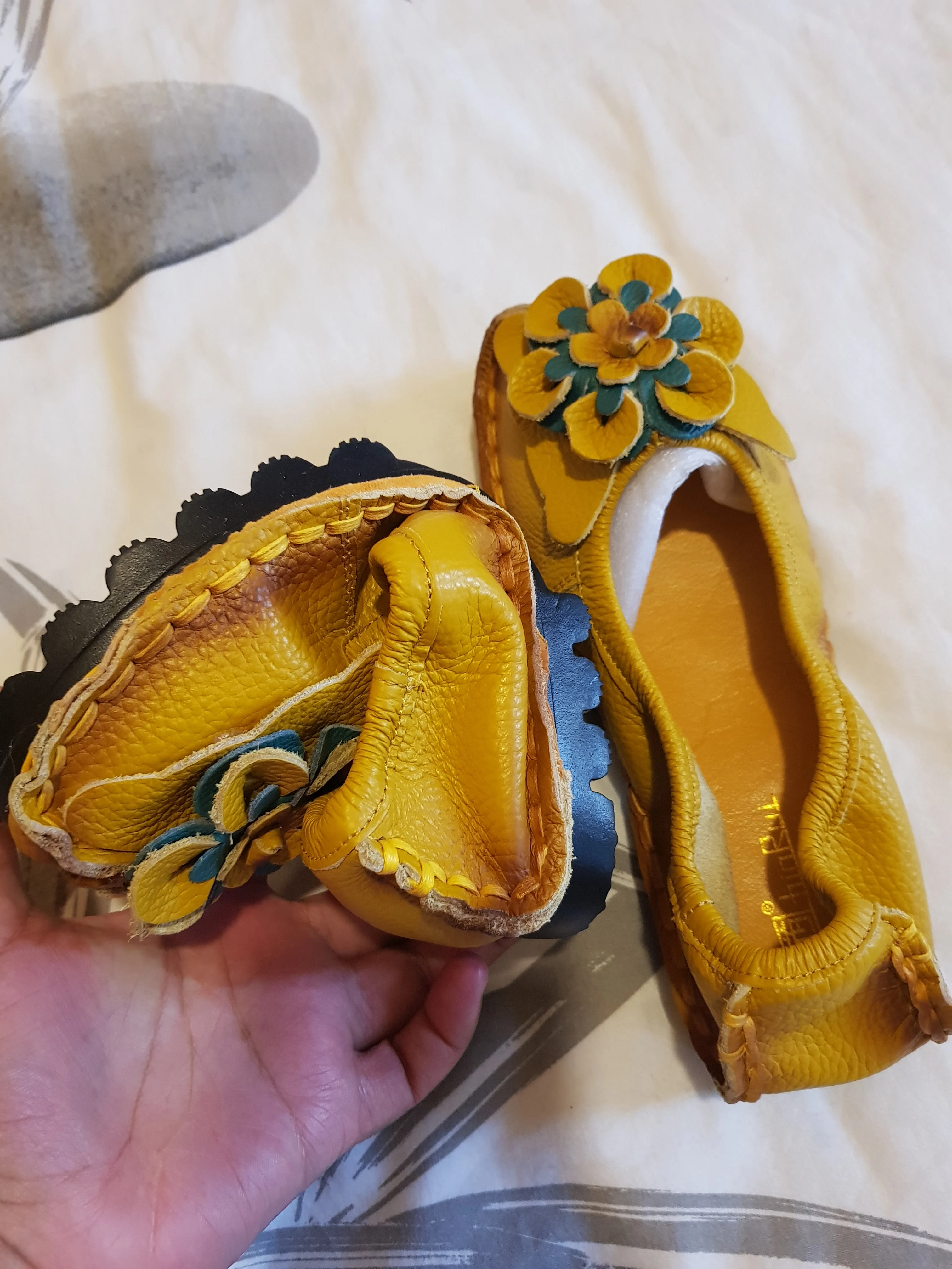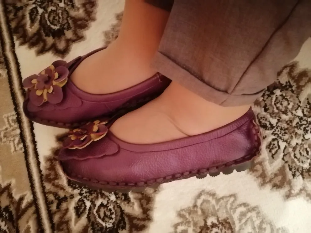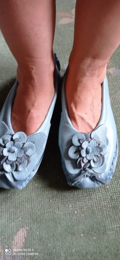 Очень довольна туфельками,мягкие,для бохо стиля идеальны,резиночка по краю фиксирует,с размером угадала,для полной ноги комфортно.Упакованы со второй парой с плотный пакетс воздухом спасибо продавцу не помялись ,без запаха,шли чуть больше месяца с распродажи в МО.