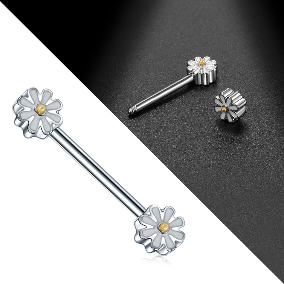 1 шт./лот, сексуальная нержавеющая сталь, цветок маргаритки, пирсинг для сосков, щит 14 г, пирсинг штанги, пирсинг, щит, кольца для сосков