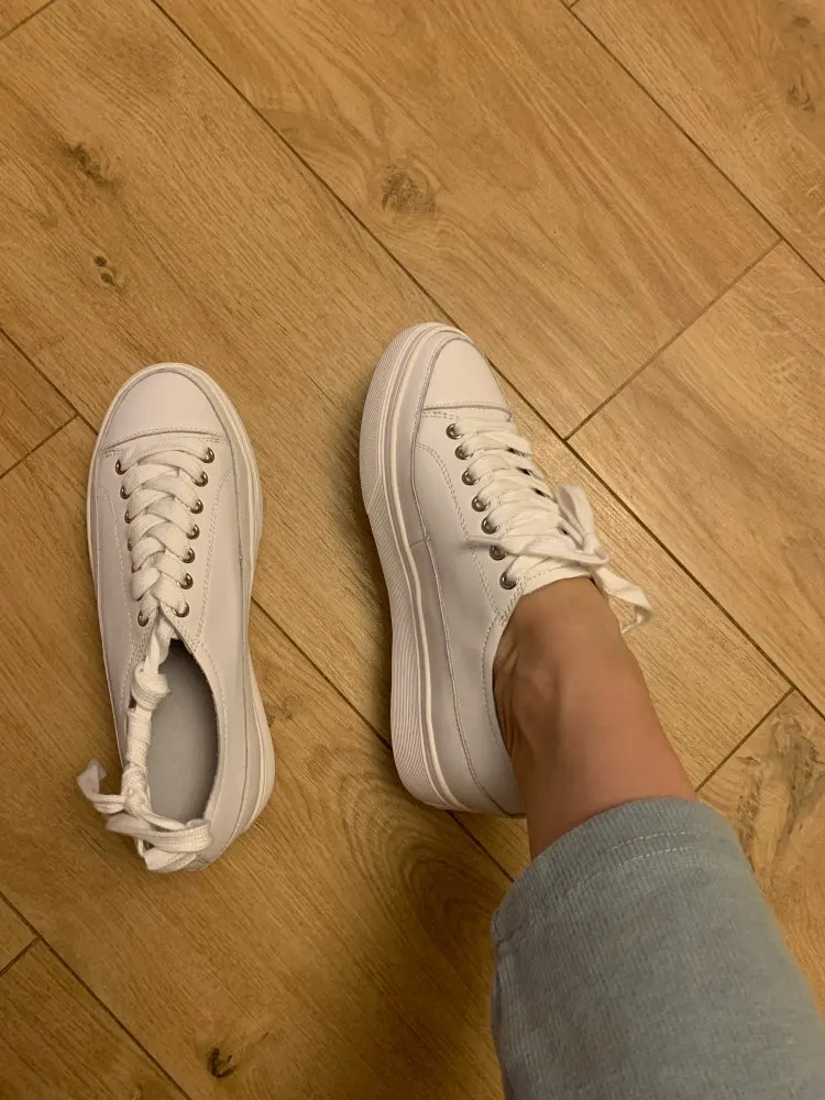 Хорошие кеды. Качественный спилок, прошито неплохо клея нет. На размер 37.5 брала 245 см. Не понравилось что нога высоко за счёт стельки и нога не держится крепко в кедах. Думаю усадка пр носке спасёт. Тяжёлые немного.