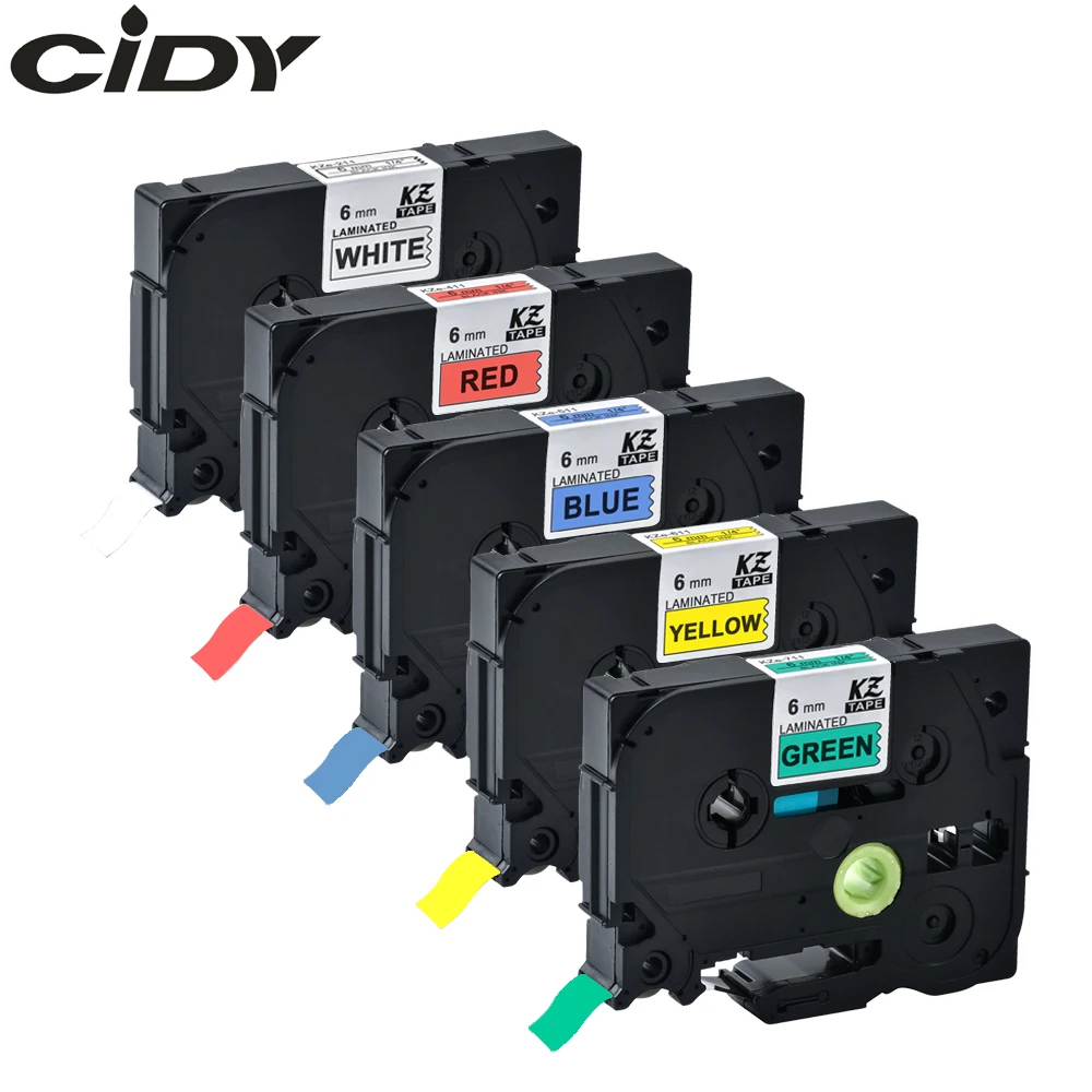 Cidy 5 рулонов смешанных TZe 211411511611711 ламинированные 6 мм tze ленты для brother p touch label лента для принтера кассета