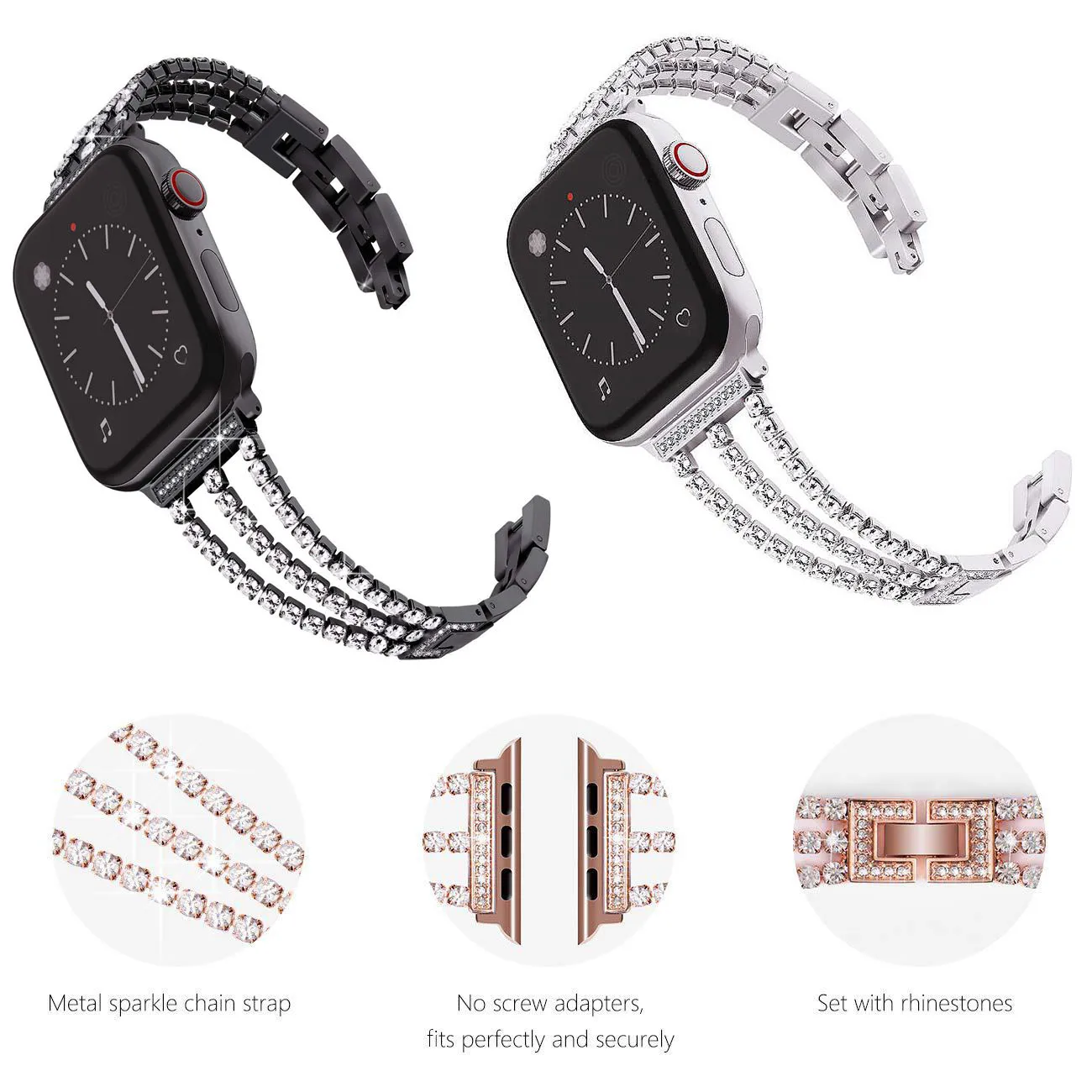 Ремешок из розового золота для Apple Watch, ремешок 44/40 мм 42/38 мм, роскошные стразы для iWatch серии 5/4/3/2/1, ремешок из нержавеющей стали