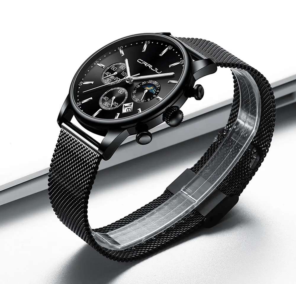 Часы мужские CRRJU, с синим циферблатом, с сетчатым ремешком