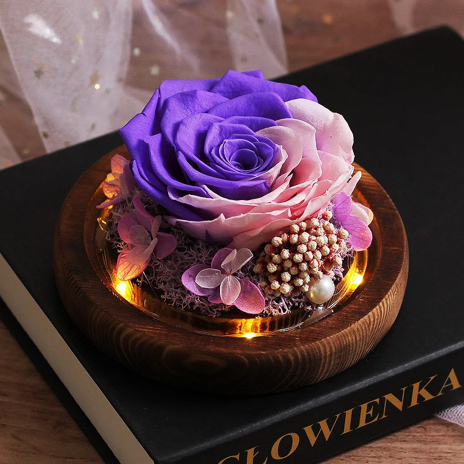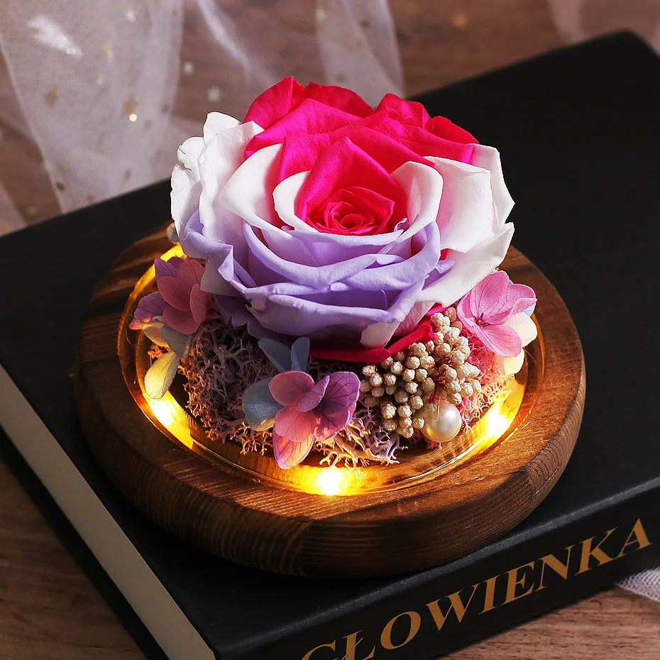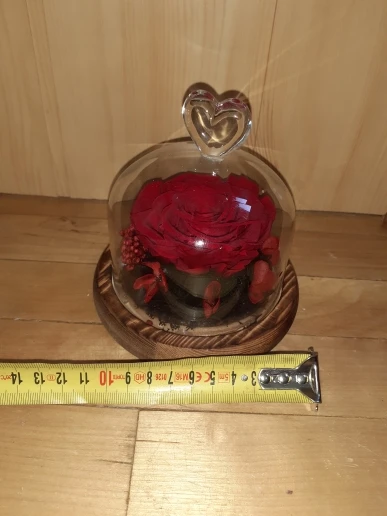 Очень хороший товар!!! Доставка: новая почта (консолидация нескольких посылок), месяц. Всё отслеживалось от начала до конца. Дошло без повреждений. Упаковка: посадочная коробка - пенопласт с вырезанной в нем формой. Идеальнейший подарок по любому поводу!!! Берите - не пожалеете!!! Роза живая - очень яркая и плотная. Размер: 12 на 10 см. Пропорции хорошие. Колба - стекло, низ - тонированное дерево (посылка вся пропахла деревом). Светодиодная лента встроена в основание - светит ярко, на трёх батарейках типа ААА (в комплект не входят) Всем рекомендую продавца.!!!5+ Всем удачных покупок!