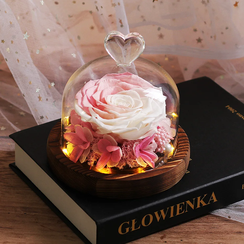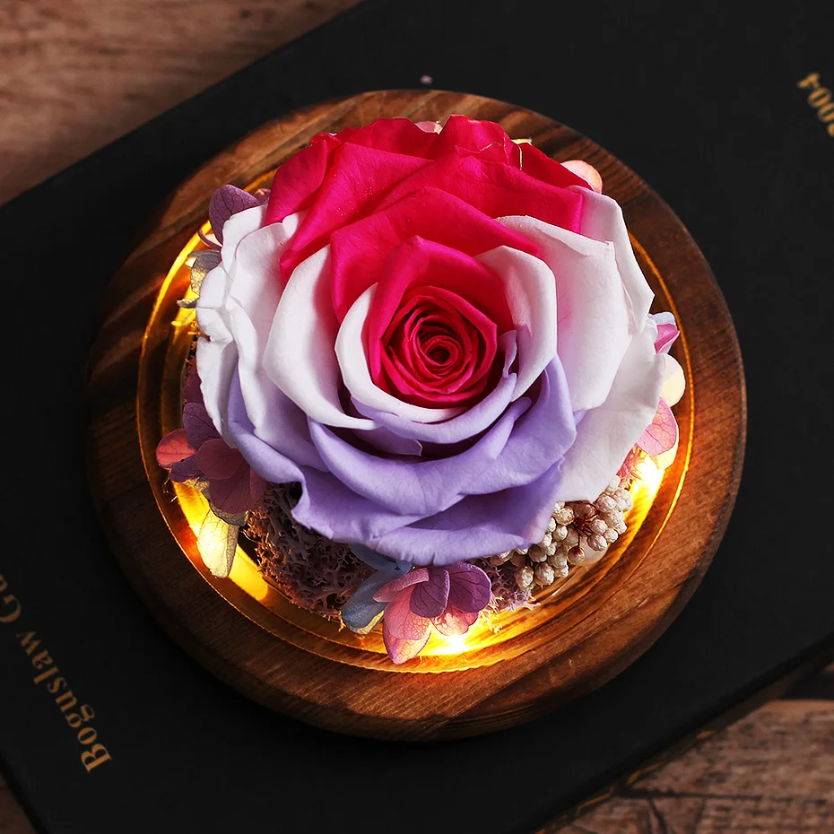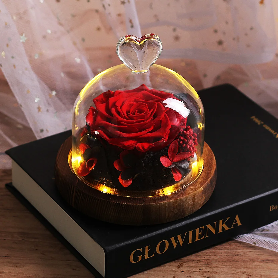 Домашний декор Красавица и чудовище, настоящая Роза в стеклянном куполе, засушенные светодиодный, подарки на Рождество, свадьбу, День святого Валентина