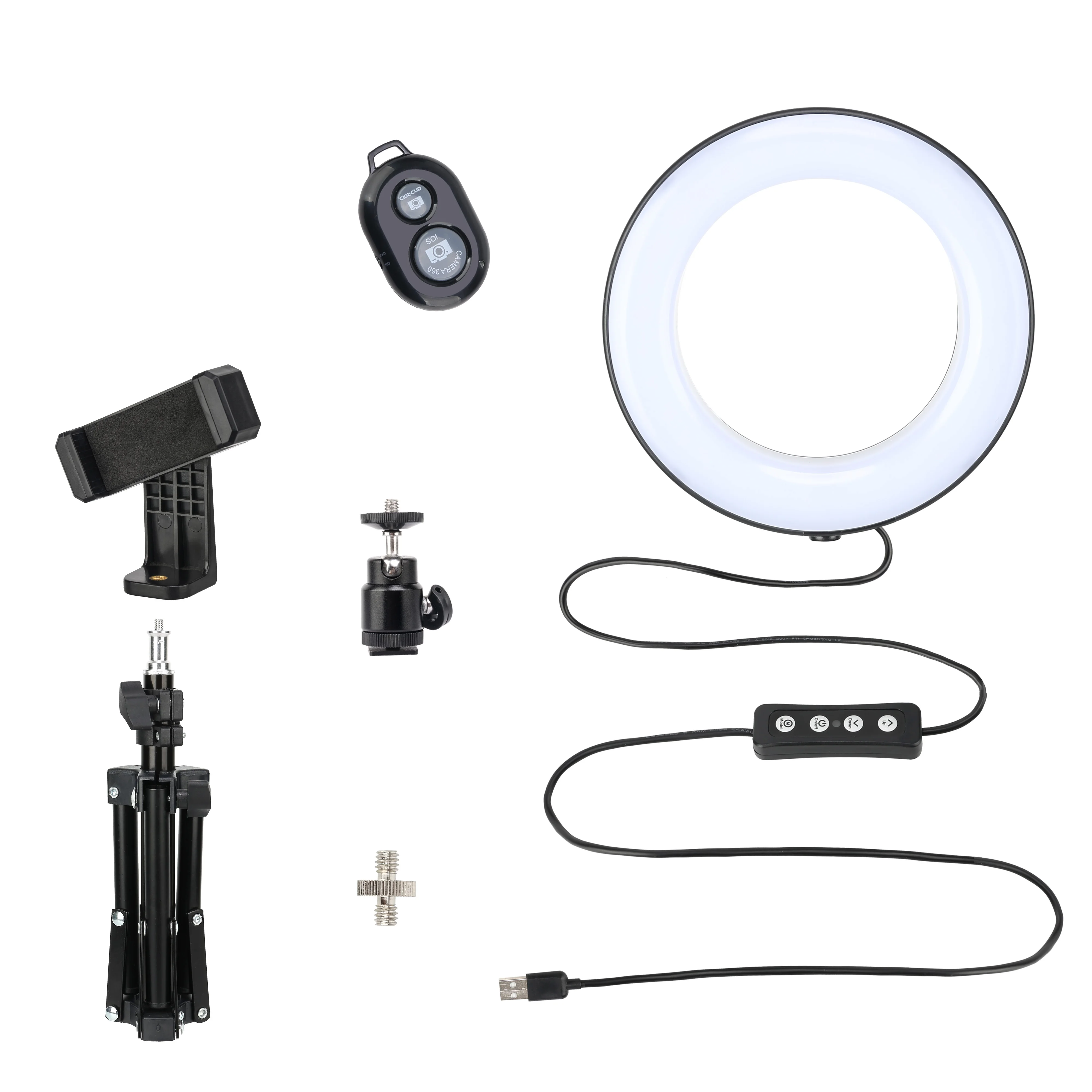-Универсальный 1/4 "винт, может быть установлен на любом продукте, который поддерживает 1/4 винтовой разъем. -Настольный светодиодный кольцевой заполняющий светильник, вес и портативный светильник, его можно подключить к штативу и использовать в различных случаях, вы можете использовать его на рабочем столе или другой платформе. -Оснащен зажимами для телефона obile, которые могут быть помещены в середине телефона для жизни, красоты и фотографии. -Обеспечивает достаточный и сбалансированный естественный светильник, и приносит вам эффект теневой апертуры. 【 Светодиодный Bulbs】 6 Вт Выходная мощность, 64 шт. светодиодный светильник равномерно помещается внутри светильник без какого-либо темного угла, мерцания, ослепления и бликов, работает как светильник для макияжа, так и светильник для фото-и видеосъемки на YouTube. 【Регулируемое кольцевое освещение 】 Регулируемая яркость и цветовая температура. 3 цвета режима освещения: белый, натуральный и теплый. Каждый режим освещения имеет 11 регулируемых яркости на выбор, удовлетворить все ваши потребности в различных обстоятельствах. 【Совместимость Совместимость с большинством смартфонов, камер и штативов, подходит для iPhone X/7 Plus, 7, 8, 8 Plus, X, 6, 6s, 5, 5s, 4, 4s/Samsung/LG/HTC. 【USB Power ed】 работает с большинством устройств, поддерживающих usb-порт, таких как ноутбук, ПК, внешний аккумулятор, зарядное устройство USB, адаптер переменного тока и т. д. Простое управление шнуром для включения/выключения или переключения в режим освещения, который вы предпочитаете.