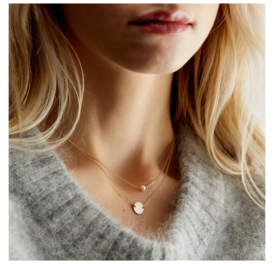 E-Manco Двухслойное ожерелье для женщин изящное ожерелье из нержаве...