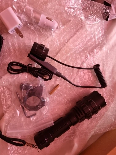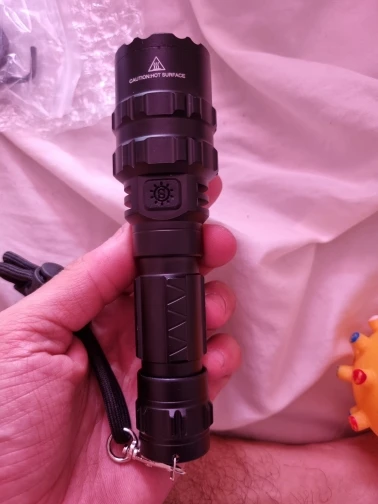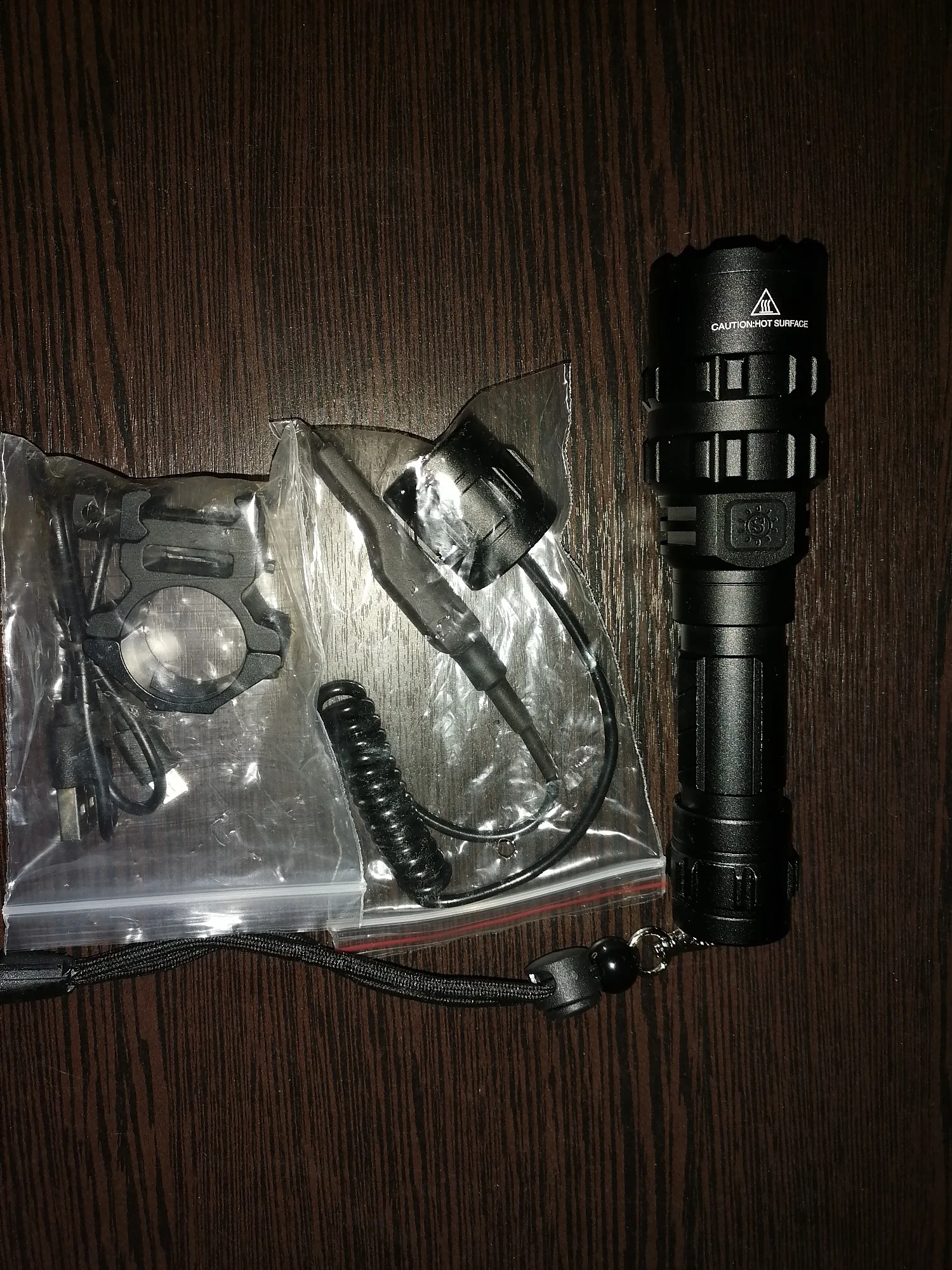 Цікава річ, вперше маю з такою справу. Зроблена акуратно, має резинові прокладки на різьбових з'єднаннях корпусу. Розбирається навіть зі сторони захисного скла, доречі неорганічного, здається ! Можна його замінити, протерти і т.д. Світло ліхтарика перевірив тільки у кімнаті, а це не суттєва перевірка. Не сподобалося, що є ореоли, так звані. Але центр має саму яскраву пляму, шо для мене добре. Рефлектор доволі глибокий. Гладка глянцева поверхня. Режимів 5. Три градаціі яскравості, потім строб, після нього мабуть sons. Зміна - послідовним коротким натисканням. Утримуємо 4 сек, виключається. Додане дистанційне керування сподобалося: має дві паралельні(щоб не промазати пальцем) мікрик кнопки (натиснув- горить, відпустив- не горить) і одну кнопку із фіксацією.