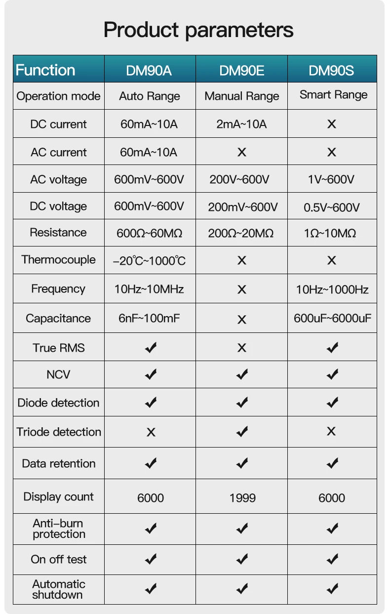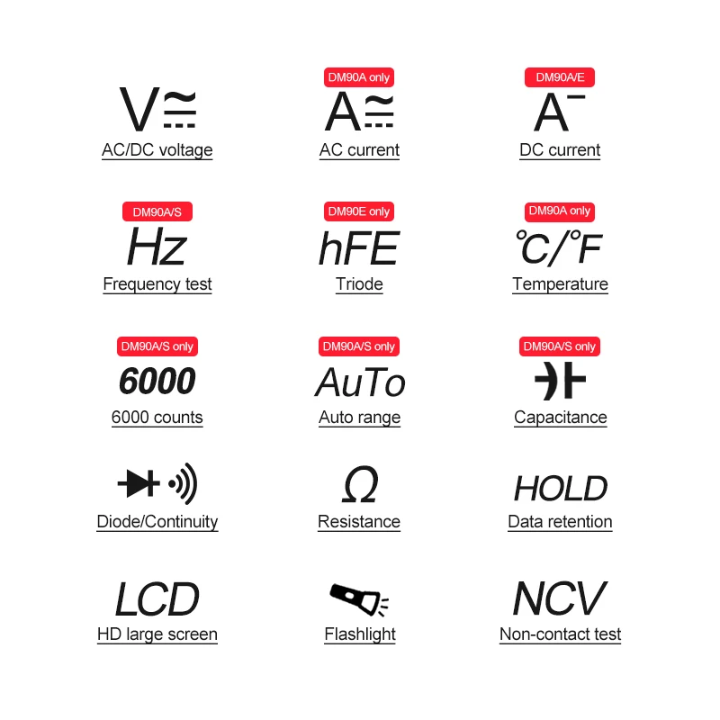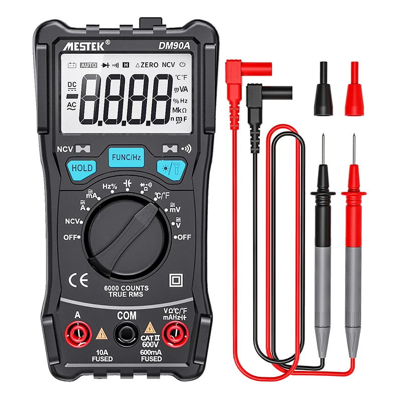 Цифровой мультиметр Mestek DM90 с автоматическим выбором диапазона, 6000 отсчетов, подсветка, амперметр переменногопостоянного тока, вольтметр, Омметр