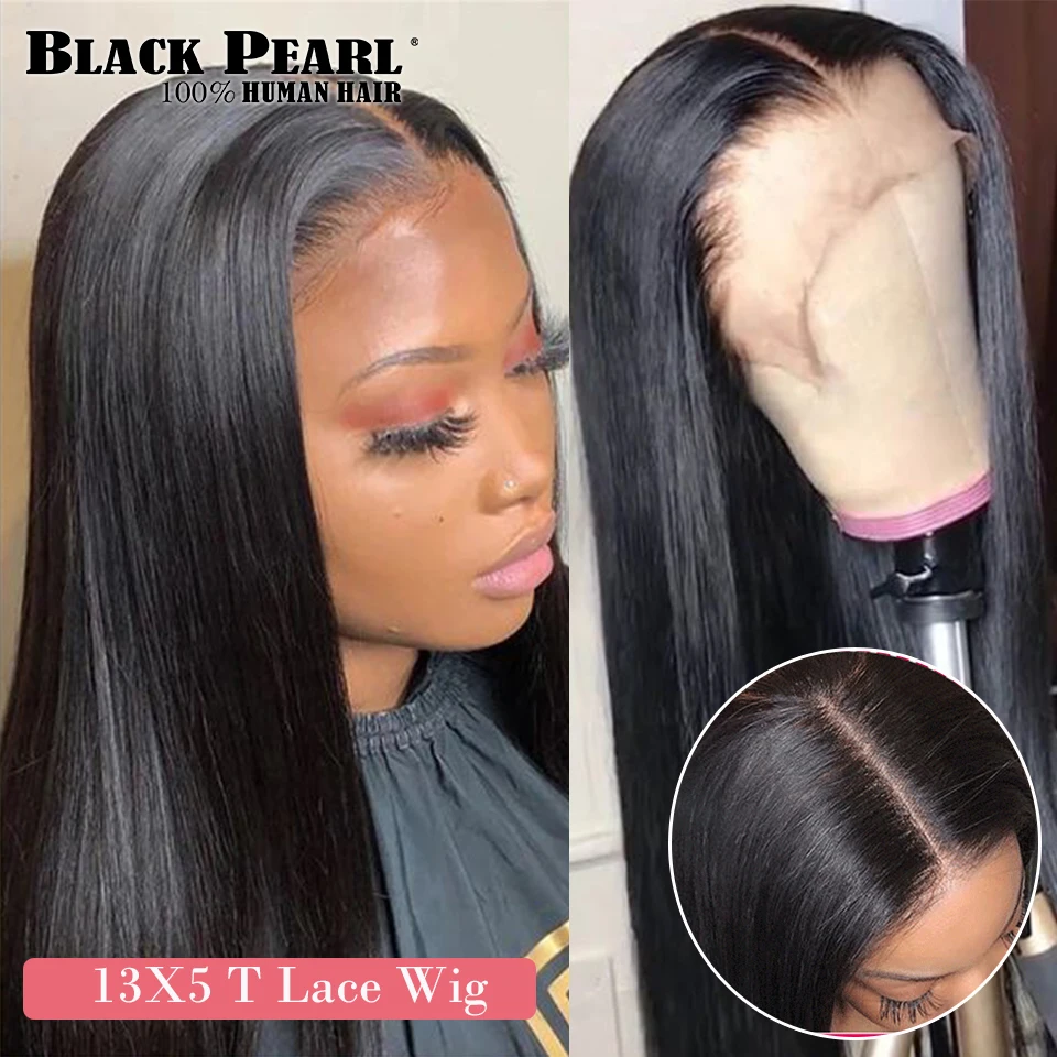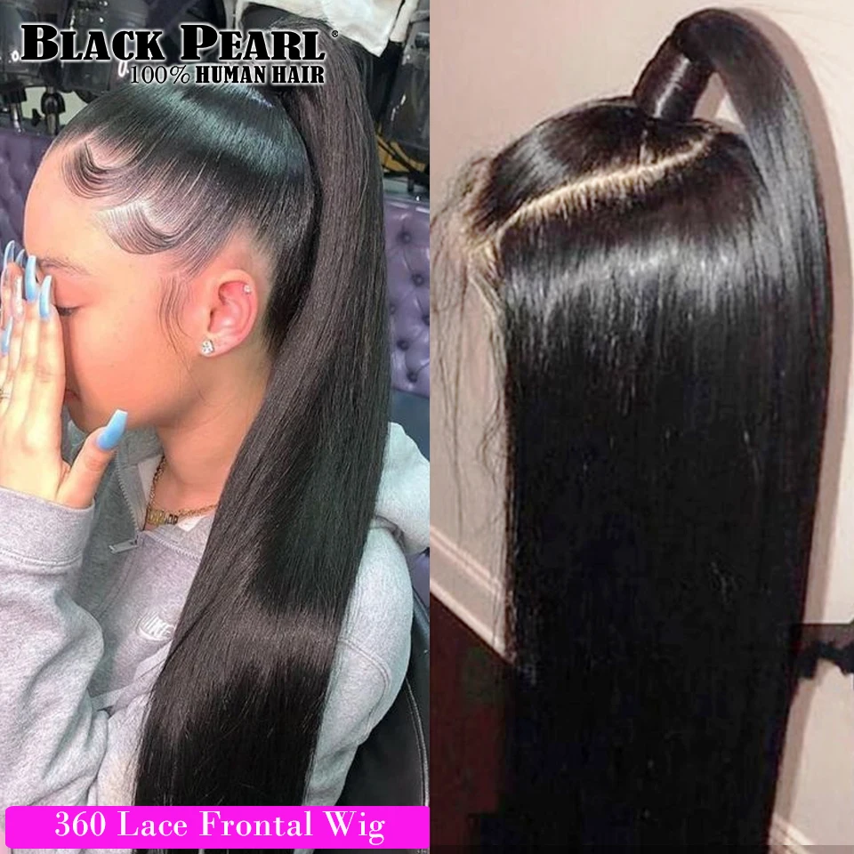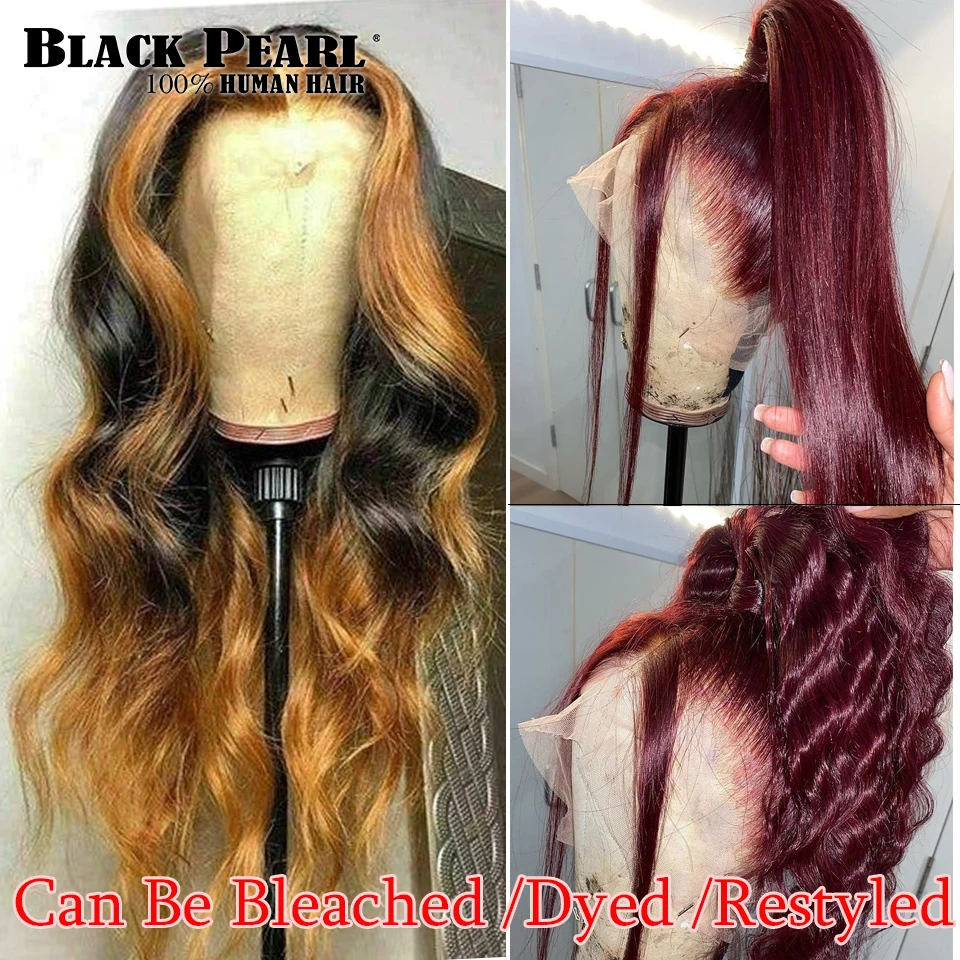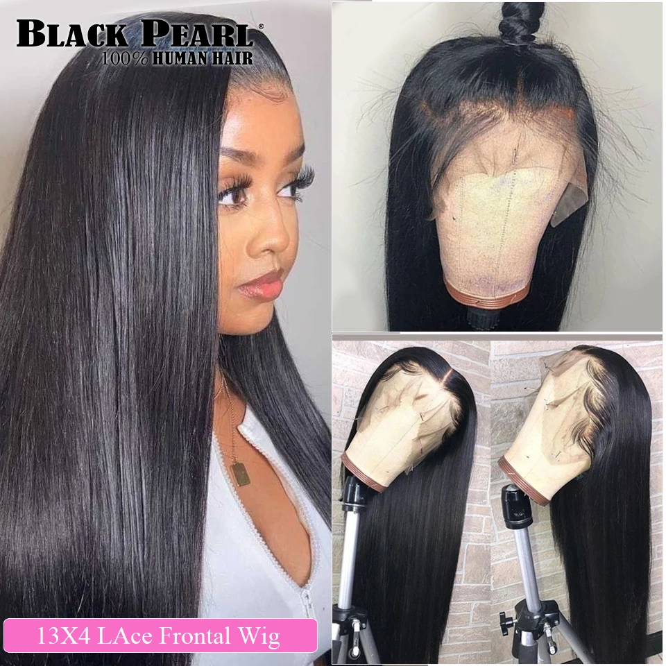 Черные перламутровые 13х4 парики из человеческих волос с кружевной передней частью 8-30 дюймов предварительно выщипанные бразильские прямые парики с кружевной передней частью для черных женщин