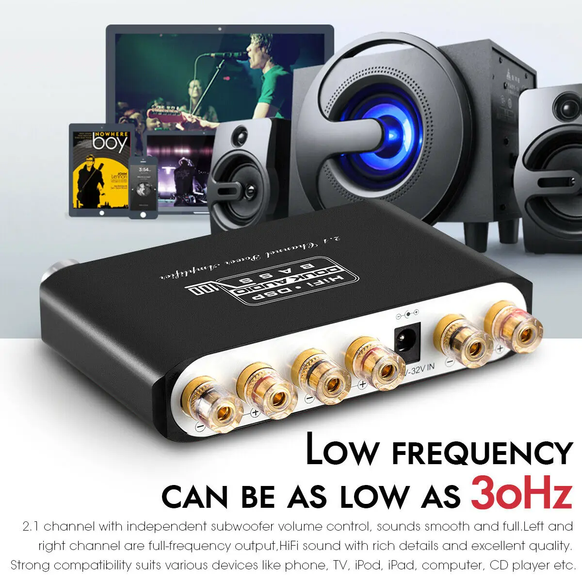 ①Низкая частота может быть ниже 30 Гц, 2,1 канала с Мощный сабвуферВыход и шокирующие басы, Звук гладкий и полный. HiFi звук с богатыми деталями и отличным качеством приносит слуховой праздник.
