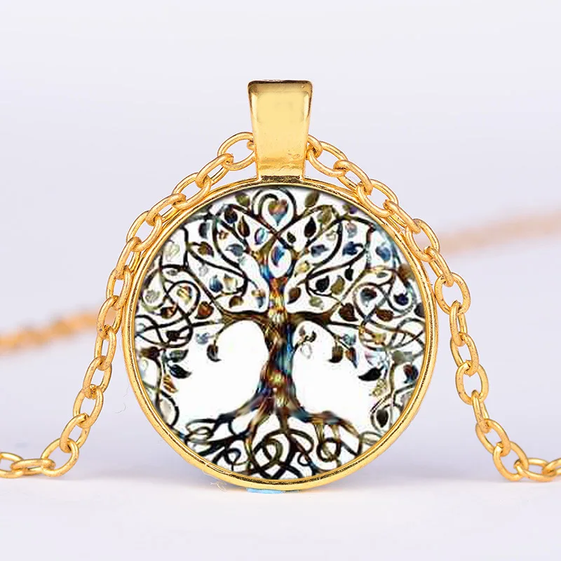 Новейшее эффектное ожерелье дерево жизни художественное фото стеклянный кабошон подвеска очарование женское колье DIY ожерелье для подарков ювелирные изделия