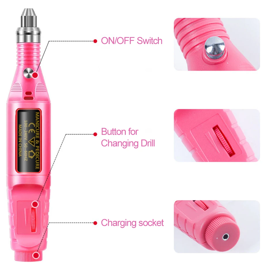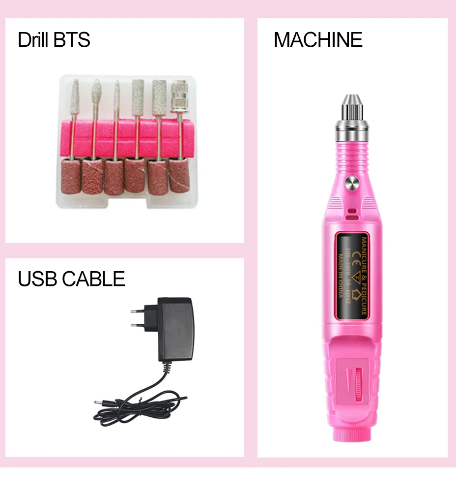 Электрический аппарат для маникюра, USB-кабель, инструмент для удаления кутикулы и геля, для дизайна ногтей, фрезерование, сверла, шлифовальные фрезы, аппарат для педикюра