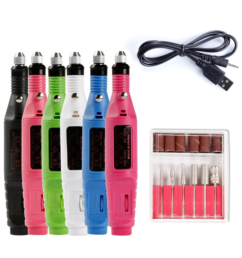 Электрический аппарат для маникюра и педикюра с USB-разъемом, фрезер для удаления кутикулы и геля, для нейл-арта, шлифовальные фрезы
