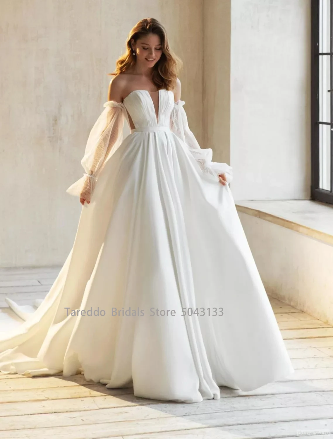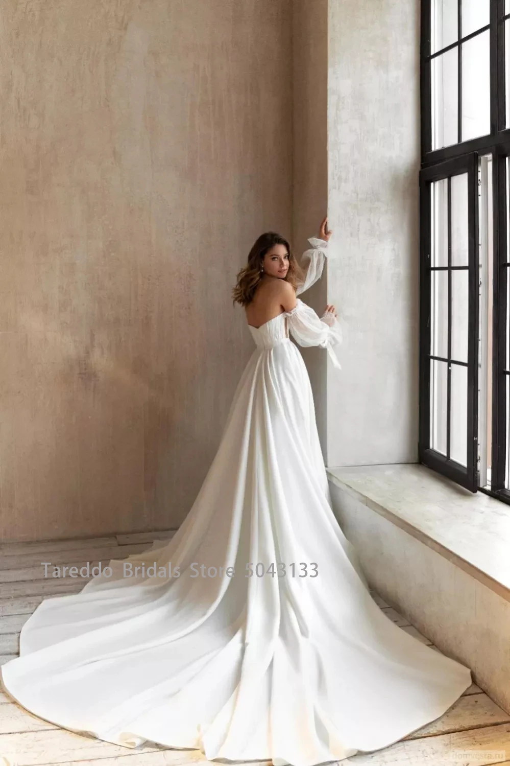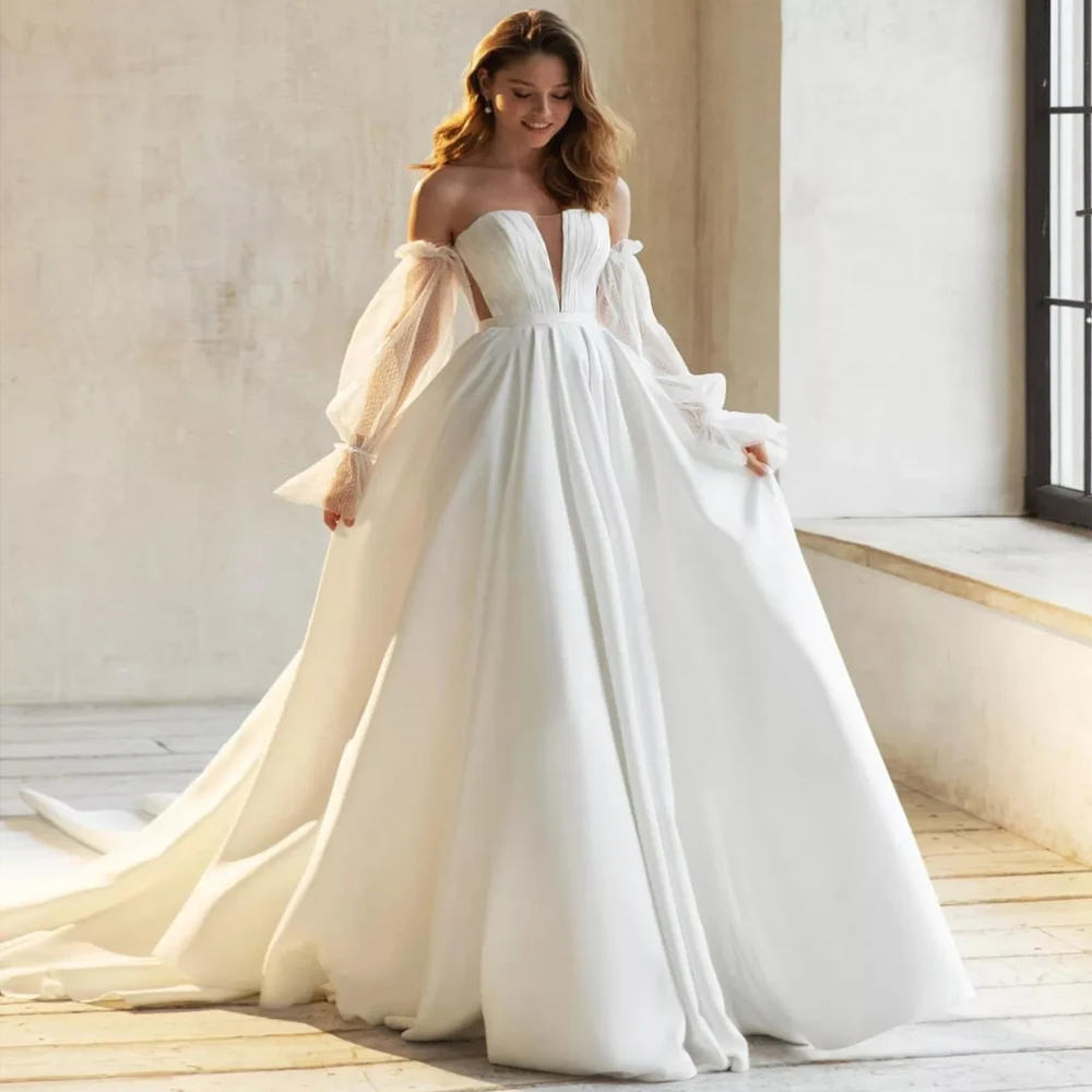 2022 струящиеся шифоновые Свадебные платья Бохо съемные пышные тюлевые рукава с вырезом сердечком трапециевидные Плиссированные Свадебные платья