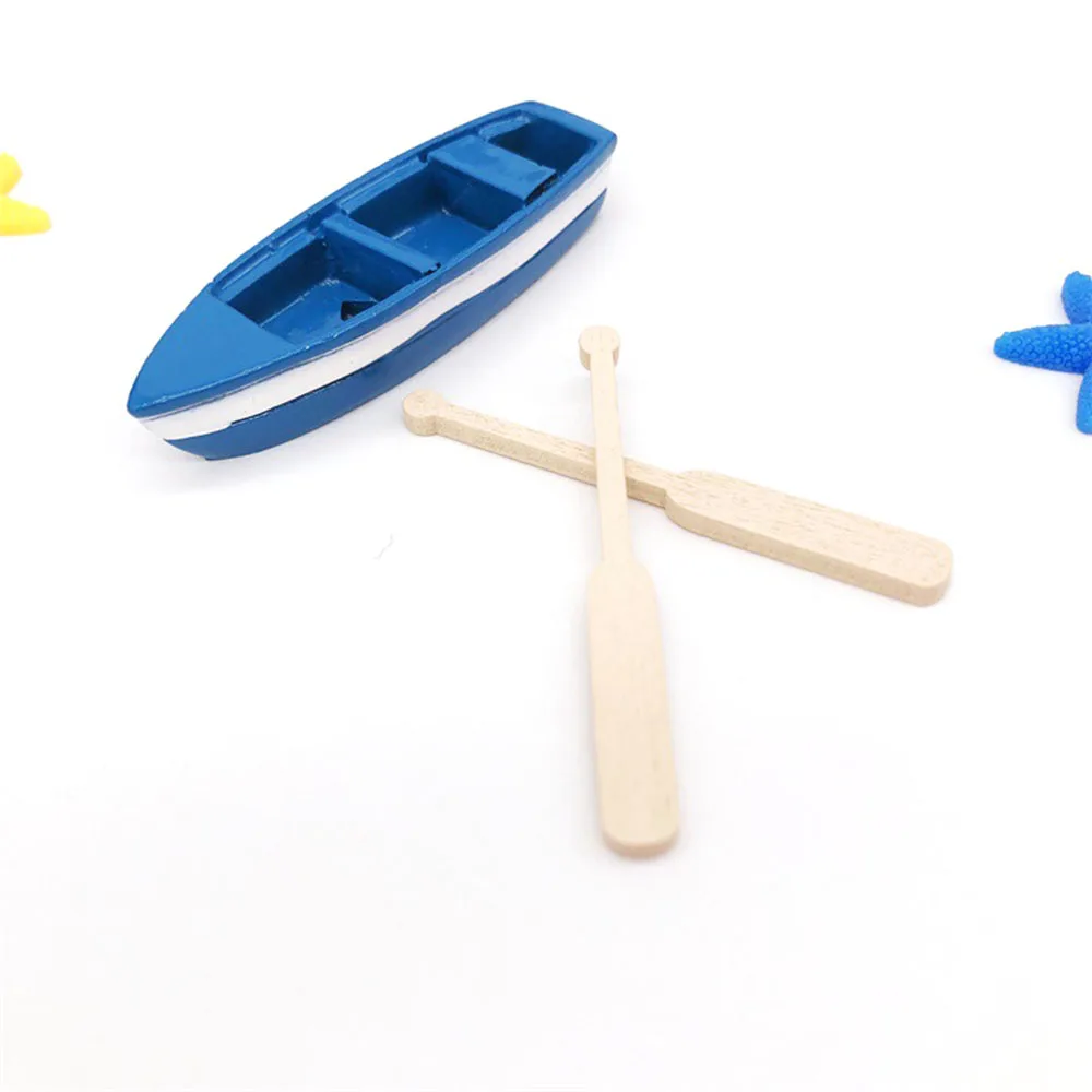Миниатюрные аксессуары для кукольного домика, миниатюрная полимерная лодка с двумя веслами, модель пляжа, игрушка для украшения кукольного дома, 112
