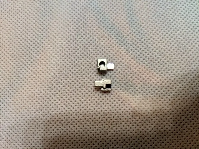 Одна из сторон левого замка была выгнута, из-за чего очень туго ходила в своем пазу, силы пружины не хватало чтобы ее вернуть. Решилось доводкой напильником.