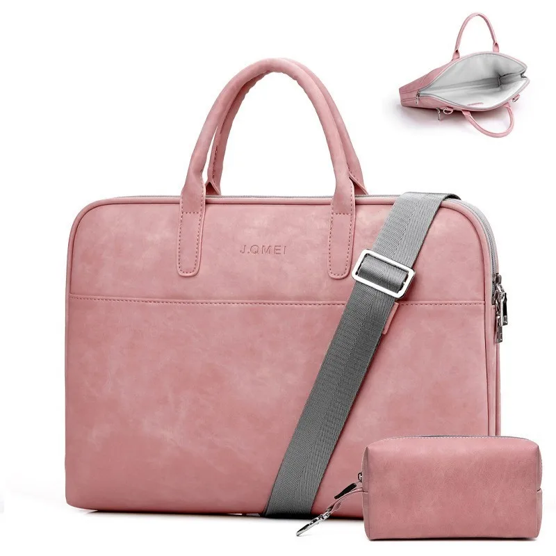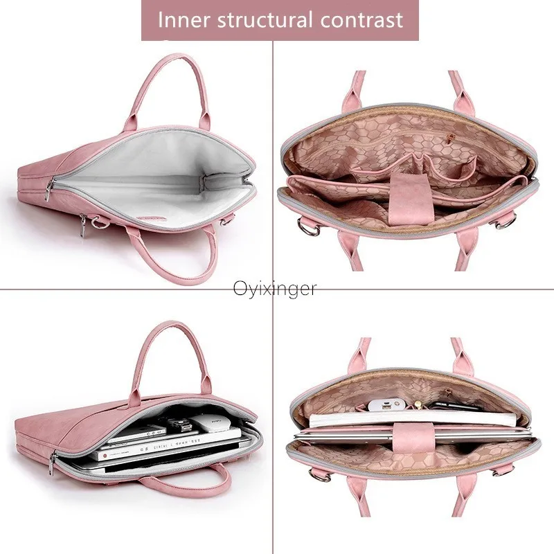Женская кожаная сумка высокого качества, розовая, для ноутбука 13 14 15 дюймов, Роскошные, водонепроницаемая, сумка для ноутбука, Женский мессенджер