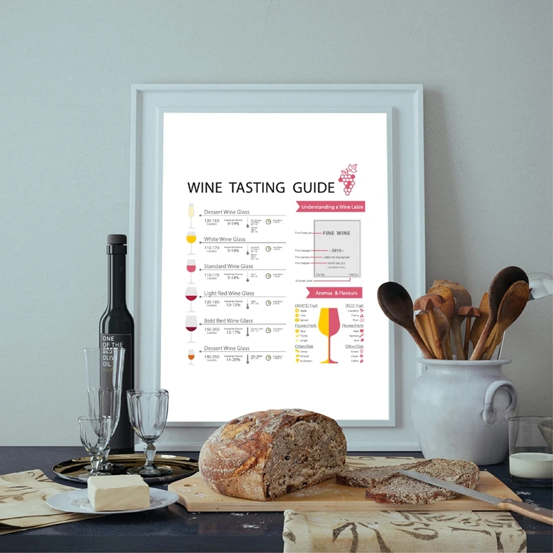 Постер с руководством по дегустации вин, холст, Художественная печать, Настенный декор для кухни, Инфографика для вина, сочетание еды, художественная роспись, Настенная картина