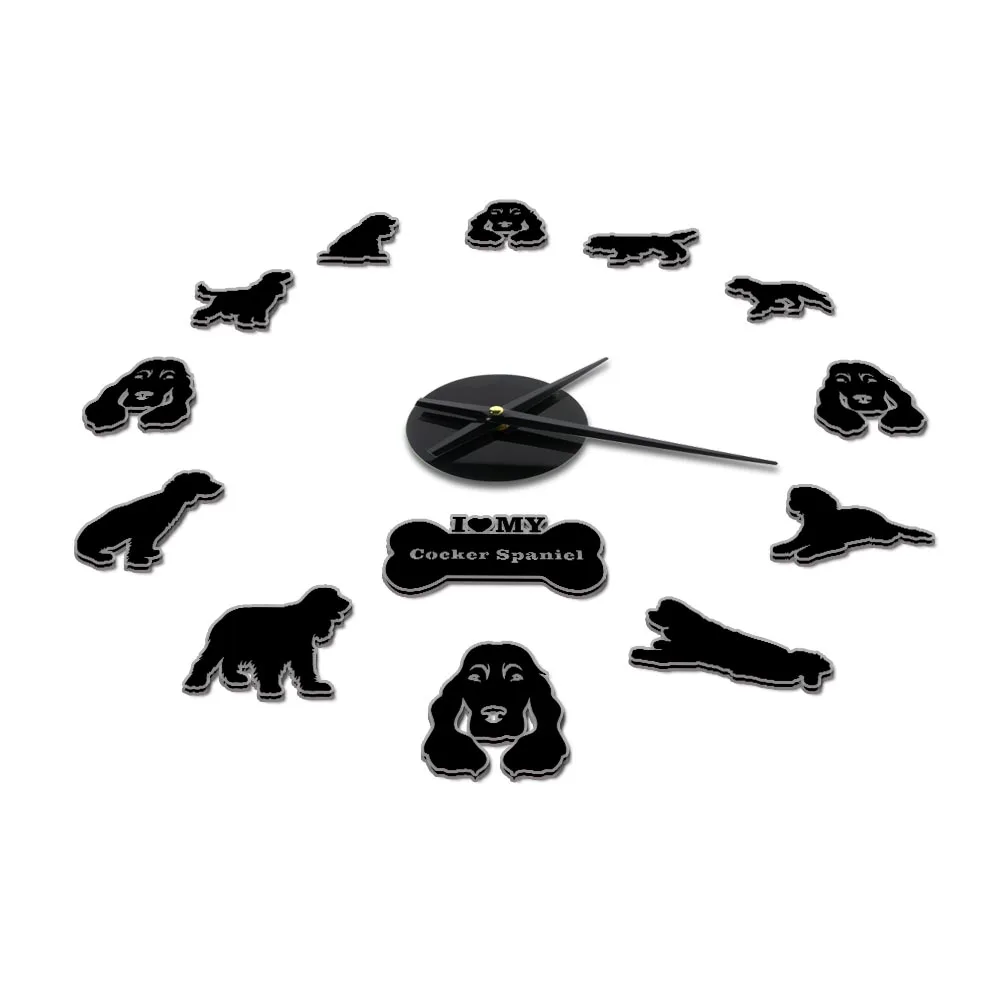 Часы настенные кварцевые с 3D рисунком Кокер-спаниель, акриловые украшения сделай сам в виде гигантской собаки, самоклеящиеся дизайнерские, с изображением Бигля для любителей собак