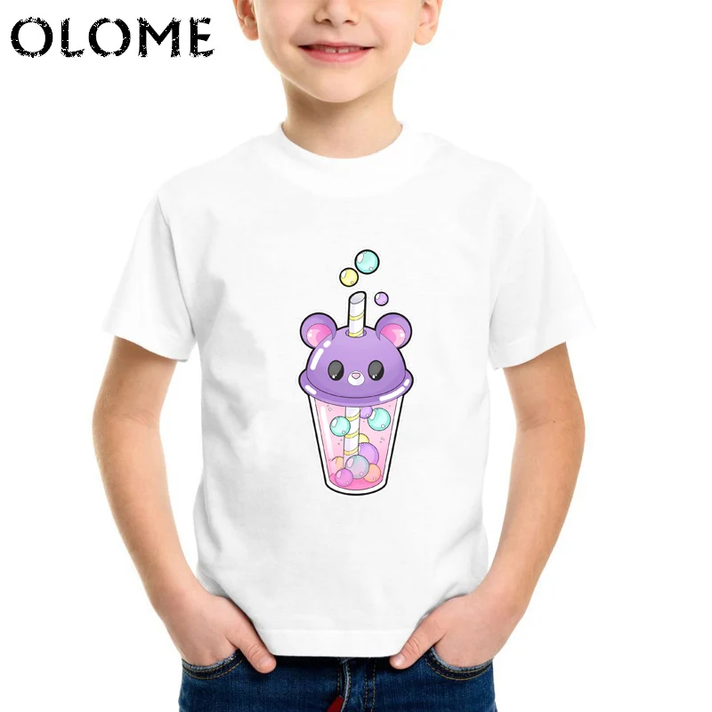 Футболка Kawaii с принтом чашки чая для маленьких мальчиков, новинка 2019, Детская летняя Милая футболка, забавные красочные пузырьки, Повседневные детские топы с круглым вырезом
