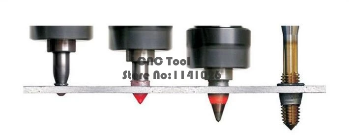 Стандартное горячее сверло проникает в заготовку, образуя куст, формируя воротник на поверхности заготовки. Этот держатель подходит для уплотнения резьбы или шайб гаек.