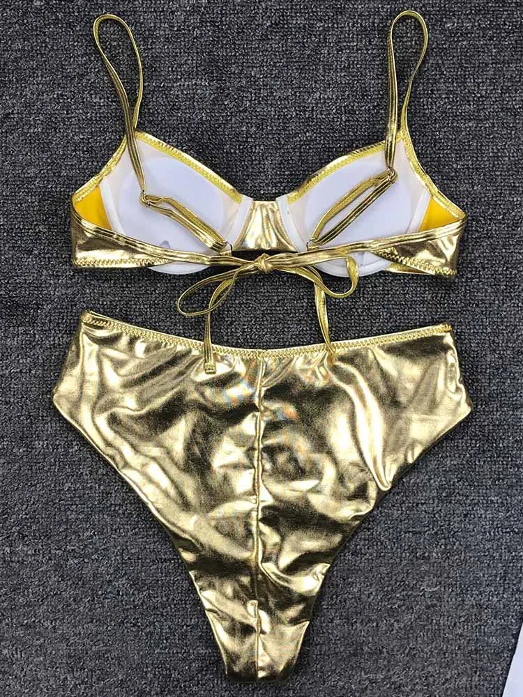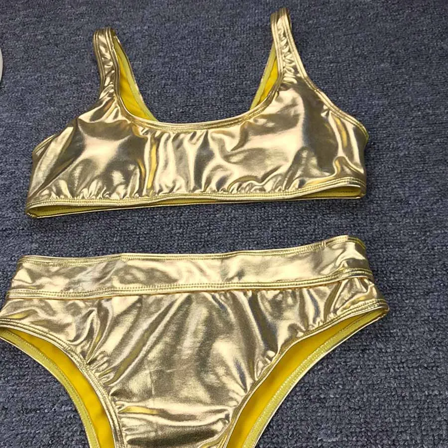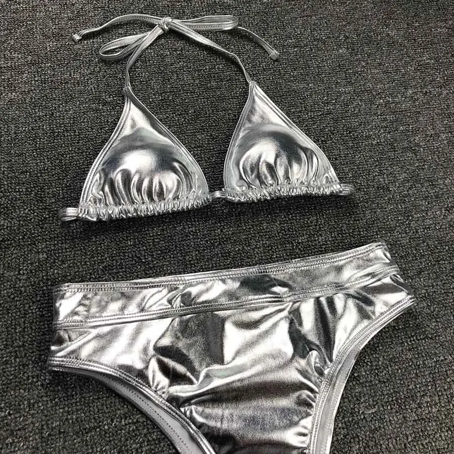 Новинка, женский слитный купальник глянцевый золотистый Серебристый, женский купальный костюм с V-образным вырезом, купальник, монокини