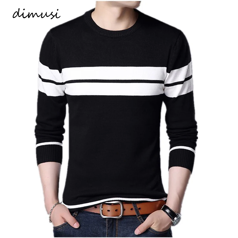 DIMUSI/зимний мужской модный пуловер; Вязаный свитер с круглым вырезом; Повседневный теплый пуловер с длинными рукавами; Мужские свитера в полоску; Одежда