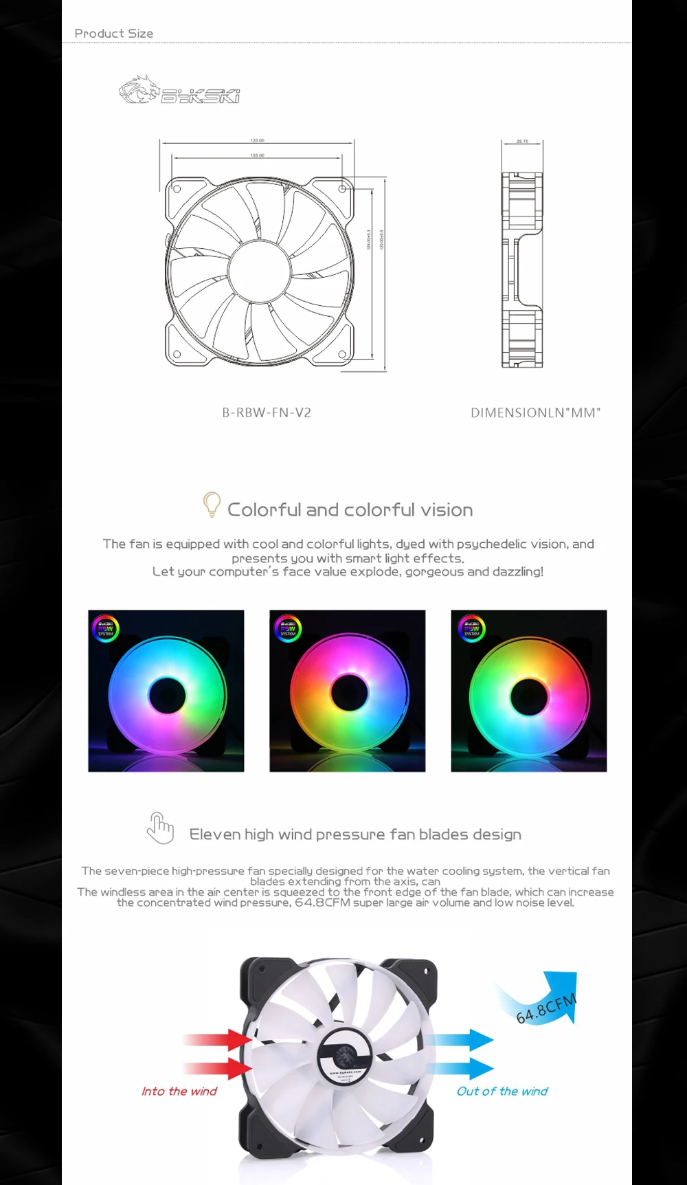 Bykski B-RBW-FN-V2 RGB PC чехол вентиляторы охлаждения 5V 3PIN Mute 120x120x25 мм, ПК, вентилятор радиатора на высоком каблуке 12 см, 64,8 куб ФТ/мин/1500 об/мин