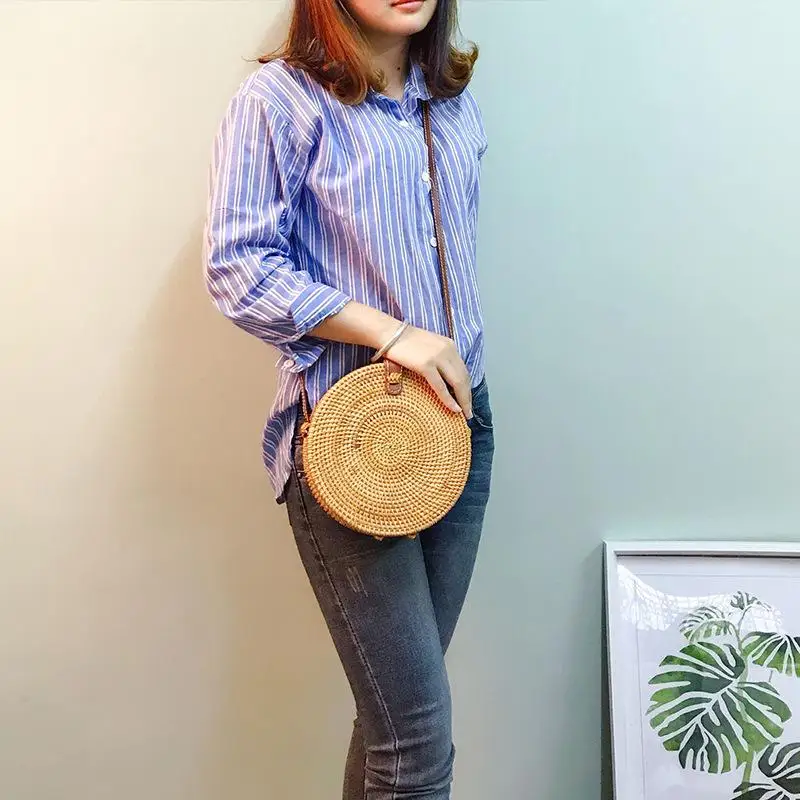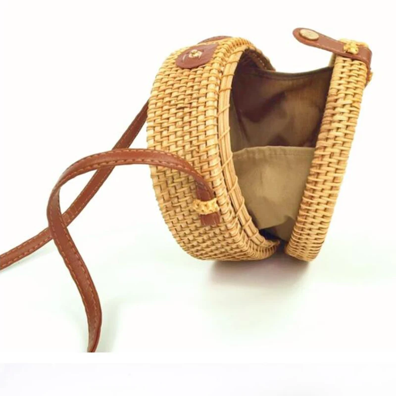 Плетеные винтажные сумки на ремне с Бали ручной работы, ремешки из искусственной кожи праздничный пляжный круглый саквояж через плечо, мессенджеры для женщин