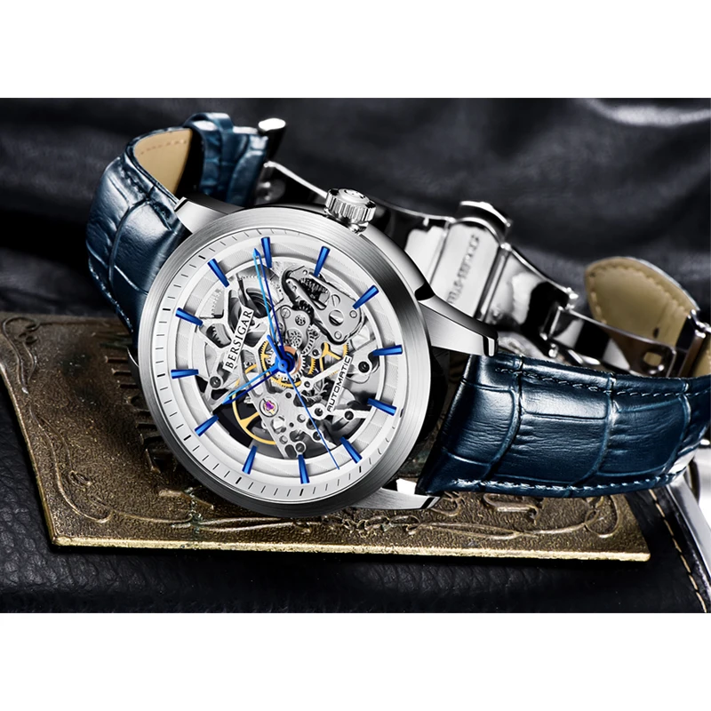 Мужские часы с высококачественными ремешками из мягкой кожи и прозрачным механизмом часов-наши мягкие кожаные ремни 21 мм невероятно прочные и долговечные при правильном использовании. Он поставляется с прозрачной передней и задней частью, что делает его более привлекательным