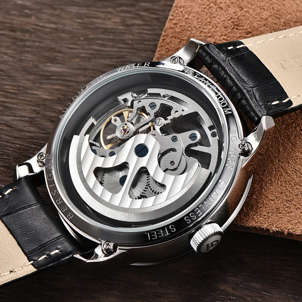 BERSIGAR-это часы с автозаводом, которые в основном называются механическими часами, которые обеспечивают кинетическую энергию от естественного движения запястья владельца. Металлический вес, называемый ротором, подключается к ручным частям. Ротор вращается с каждым движением запястья владельца, передавая энергию на основную пружину