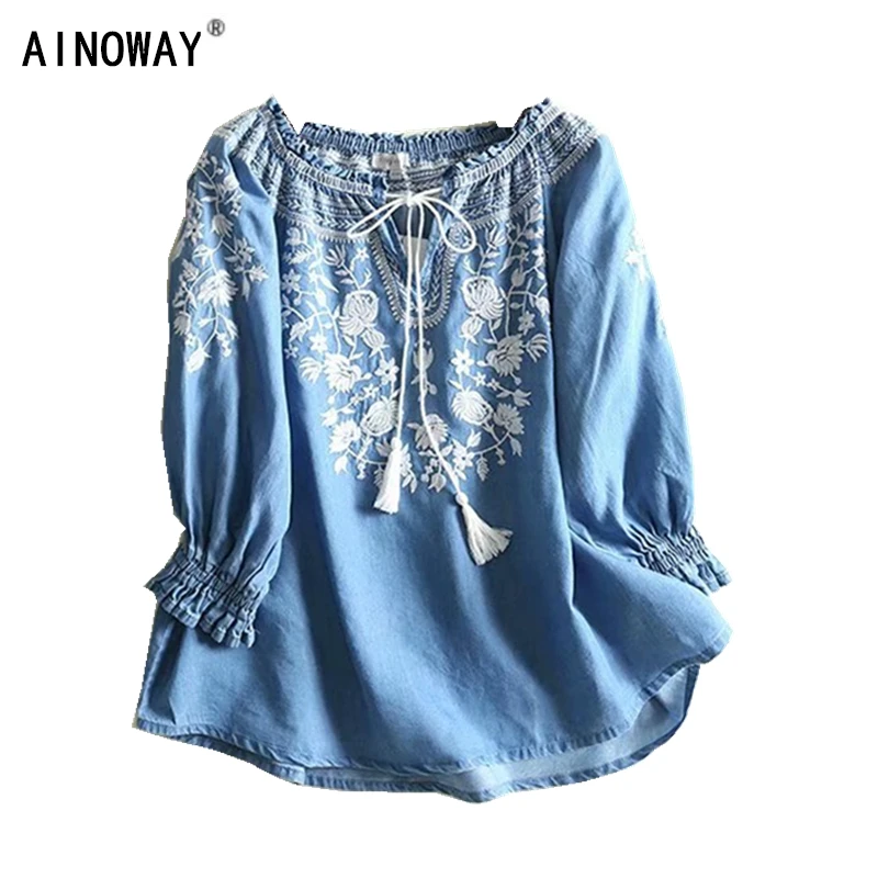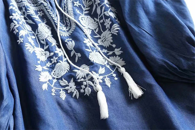 Винтажные шикарные женские богемные блузки с цветочной вышивкой, св...