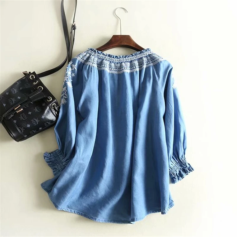 Рубашка женская джинсовая с V-образным вырезом, модная повседневная...