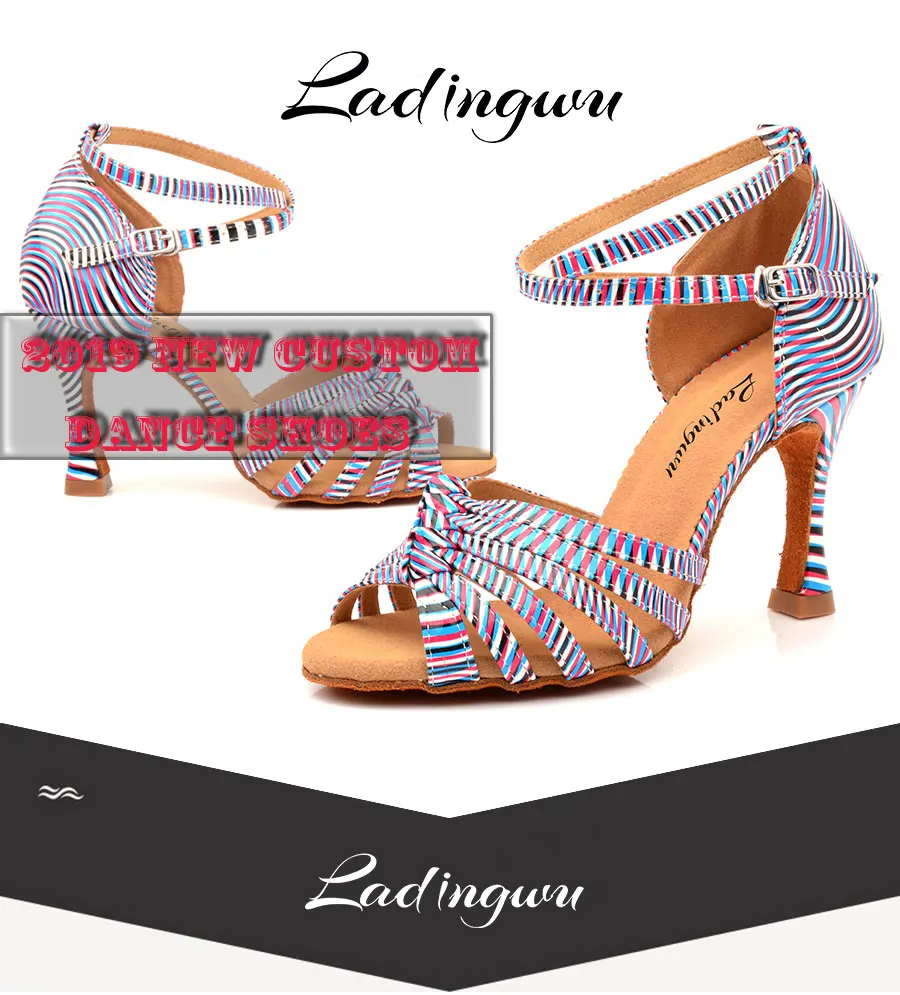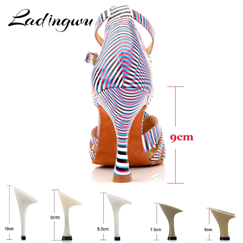 Ladingwu танцевальная обувь для латинских женщин цвет Зебра текстура PU Сальса Танцевальная обувь желтый синий оранжевый бальные туфли для женщин для танцев