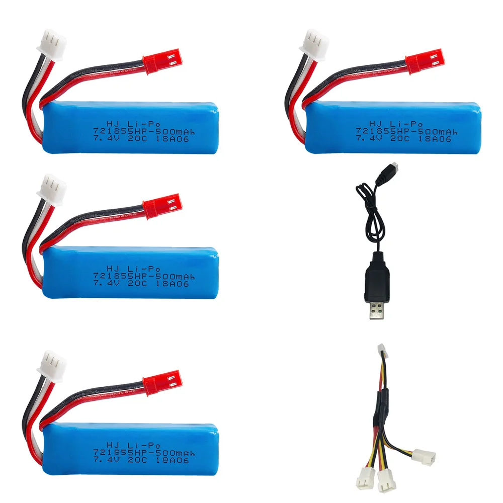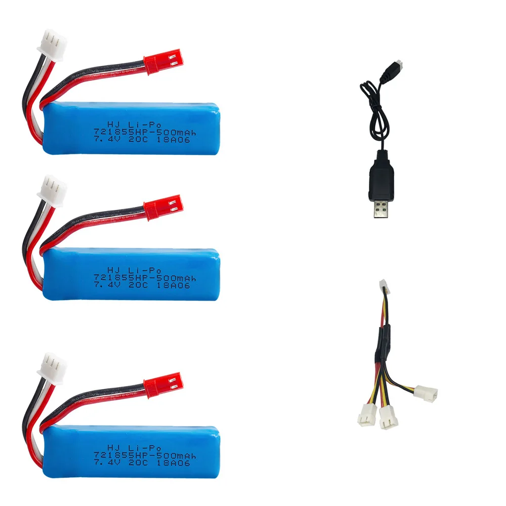 7,4 В 500 мАч Lipo аккумулятор 20C с зарядным устройством 3 в 1 кабель для WLtoys A202 A212 A222 A232 A242 A252 4WD игрушечный автомобиль с дистанционным управлением 7,4 В