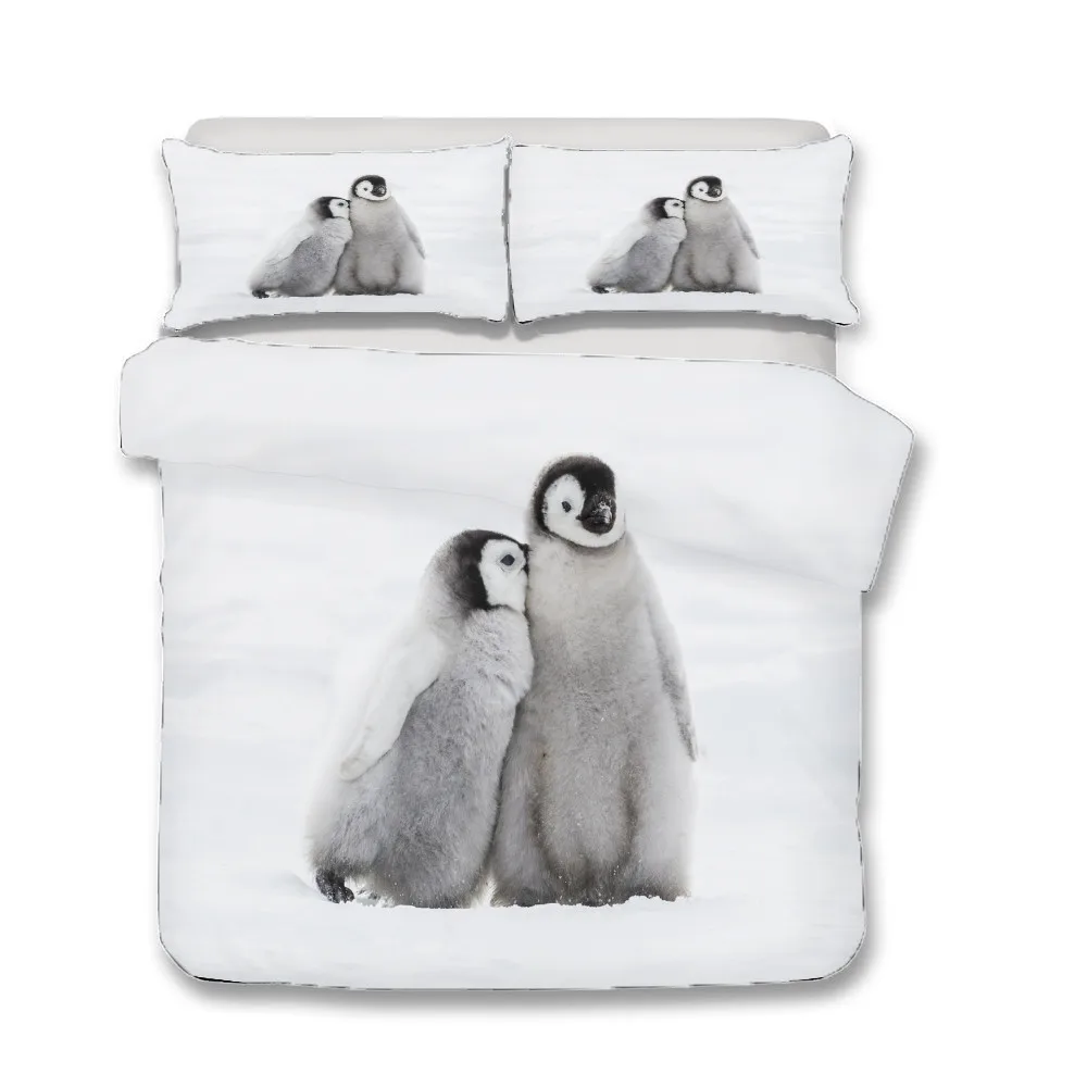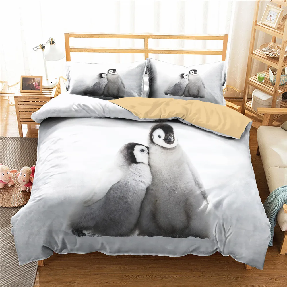 Пододеяльник с мультяшным пингвином, наволочка, одинарный, двойной, полный, Королевский размер, животные, Комплект постельного белья, 2/3 шт., Комплект постельного белья из микрофибры