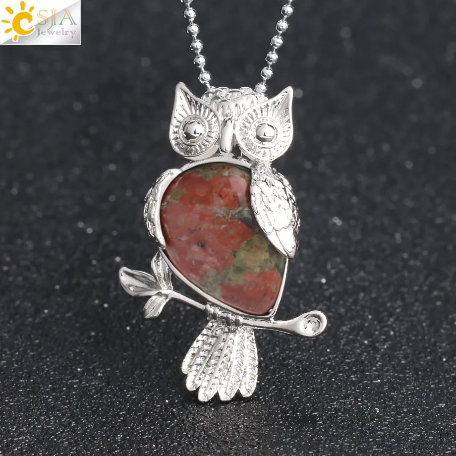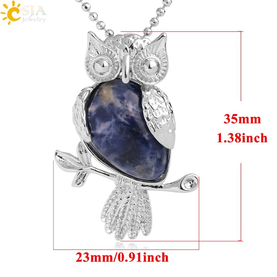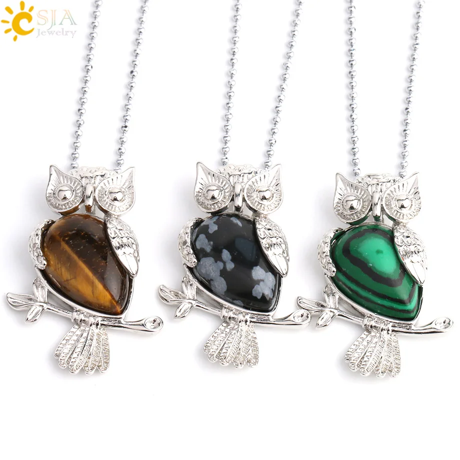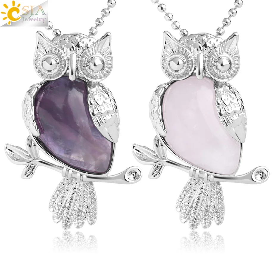 CSJA Капля воды натуральный камень ожерелье и кулоны Сова Форма розовый кварц содалит Кристалл трендовые очаровательные ювелирные изделия для женщин мужчин G077