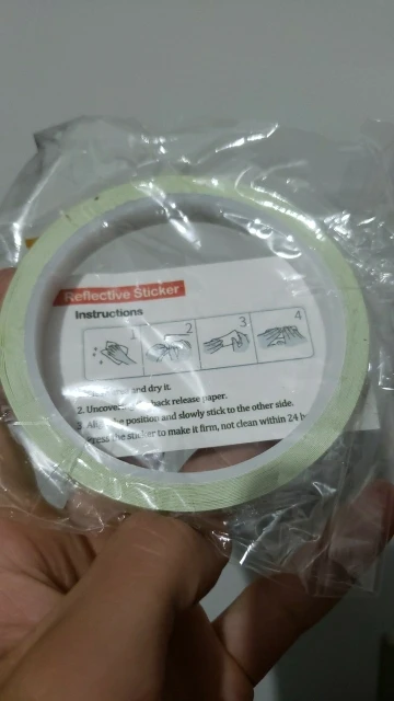 Дошло быстро. Так яркость, которую вы видите на фото товара, можно получить если поднести ленту прямо к лампе и потом сразу выключить свет. Тогда да, она будет сочно зелёная. Но уже минуты через 3 свет станет тускнеть. В кромешной тьме вас действительно можно будет разглядеть по этой ленте, но с каждой минутой ее свет будет ослабевать все больше. Максимум пока не замерял. Потом допишу.