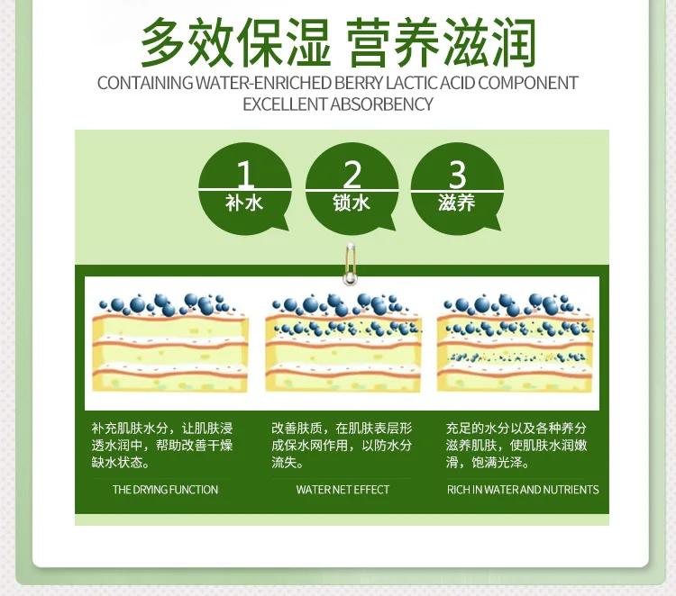 Blueberry Cucumber Pomegranate Aloe Sheet Face MaskNatural Fruit Plant Facial Mask
