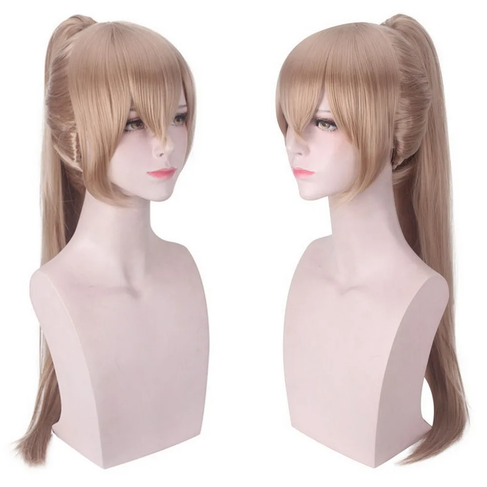 Парик для косплея каштановый блонд, женский, жаропрочный, синтетический, с когтями, конский хвост, 2019