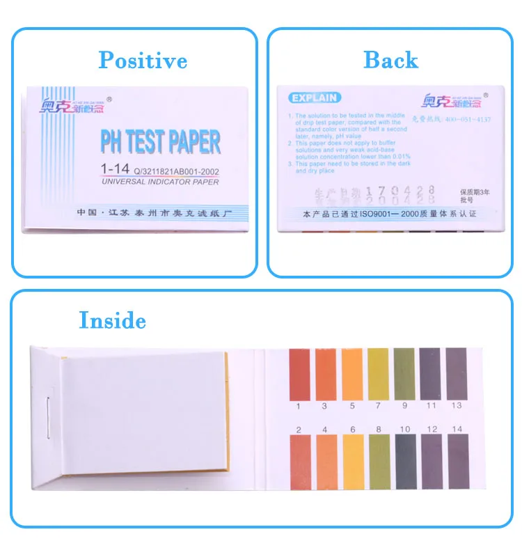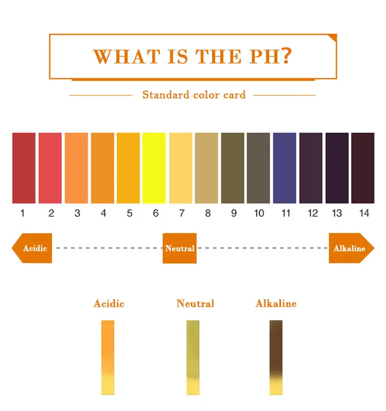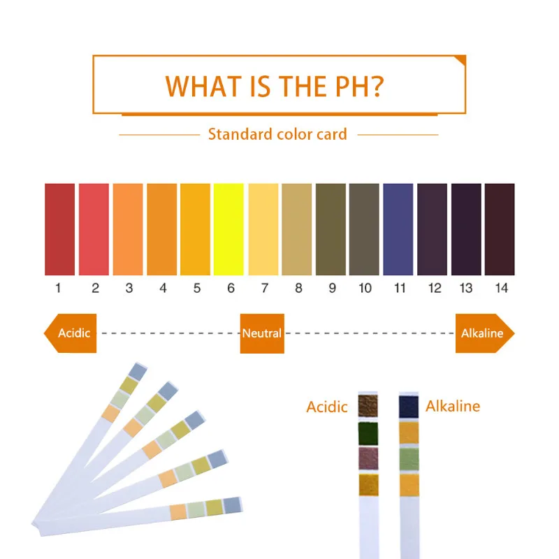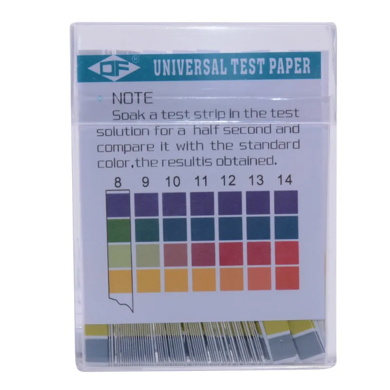 1 - 3 указывает на очень кислотное вещество 4 - 6 указывает на кислотное вещество 7 указывает нейтральный 8 - 11 указывает на Щелочность 12 - 14 указывает на очень высокий уровень щелочности Размер бумаги: приложение 45 мм x 7 мм (Д x Ш)
