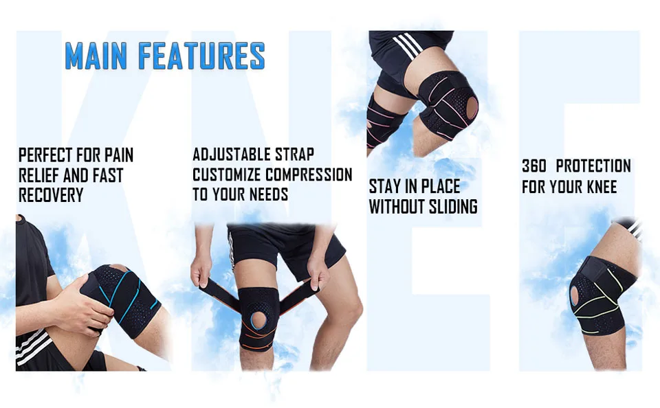 Наколенник AOLIKES, 1 шт., Быстросохнущий силикагель Coolfit, 4 пружины, спортивный наколенник, наколенники, защита для колена