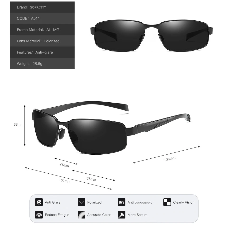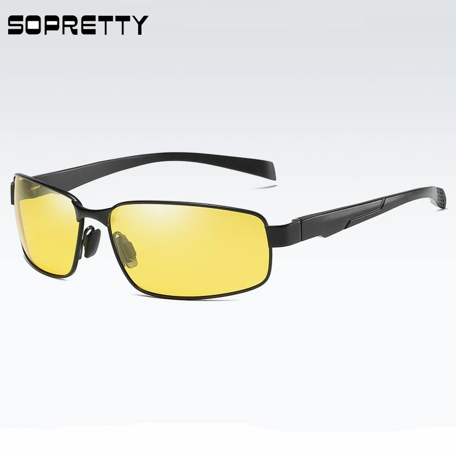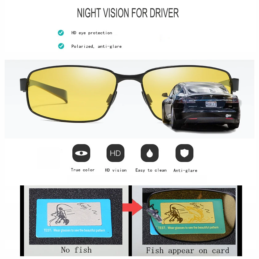 Мужские Винтажные поляризационные Квадратные Солнцезащитные очки, мужские очки ночного видения для вождения с линзами TAC и аксессуарами SA511