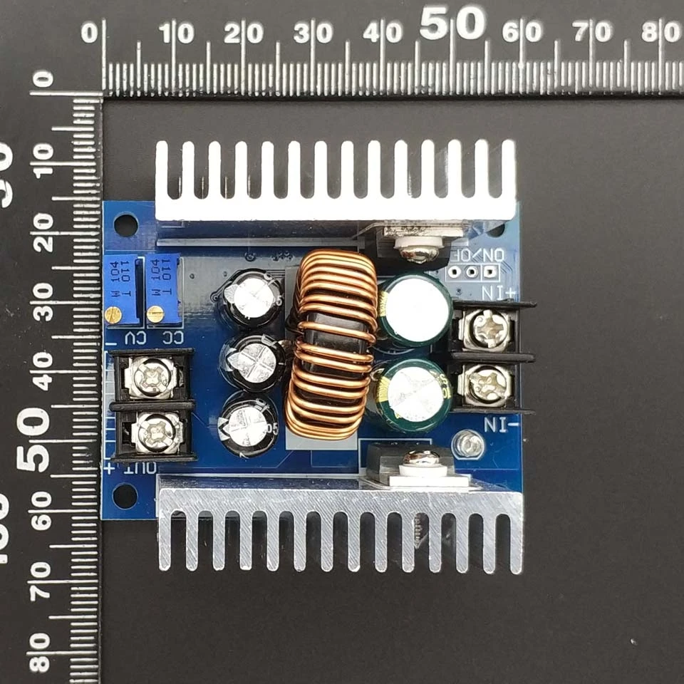 Широкий диапазон входного напряжения от 6-40 В, понижающий преобразователь может точно регулировать выходное напряжение и ток.Эффективность до 96%, измеряется при 20 А, преобразование 24 В в 12 ВОн разработан с трубкой двойной МОП-тока 75 в/80 А.На входе и выходе используется высокочастотный электролитический конденсатор с низким сопротивлением для стабильного выхода.Большой ток 30 А винтовые клеммыПонижающий модуль имеет 2 радиатора для усиленного отведения тепла.При появлении большого входного и выходного напряжения уменьшите мощность и ток.Характеристики:Входное напряжение: от 6 В до 40 В постоянного тока (рекомендуется от 10 В до 40 В)Выходное напряжение: от 1,2 В до 36 В постоянного токаВыходной ток: 20 А (макс.), 15 А (рекомендуется)Эффективность: 95% (от 24 В до 12 В, 20 А)Пульсация на выходе: ≤ 50 мВМетод подключения: клеммаЗащита от короткого замыкания: самовосстановлениеРазмер: 60x53x27 мм/2,36x2,08x1,06 дюймаVO +: положительный результатVO-: Отрицательный выход+ IN: Ввод положительный-В: вход отрицательныйCV: Регулировка выходного напряженияCC: Регулировка выходного токаEN: включить, низкий уровень выключения выходного напряжения; Подвеска, высокий уровень напряжения эффективенКогда вход и выход широко заземлены, выходное напряжение без нагрузки CV постоянное напряжение, выходной постоянный ток CC