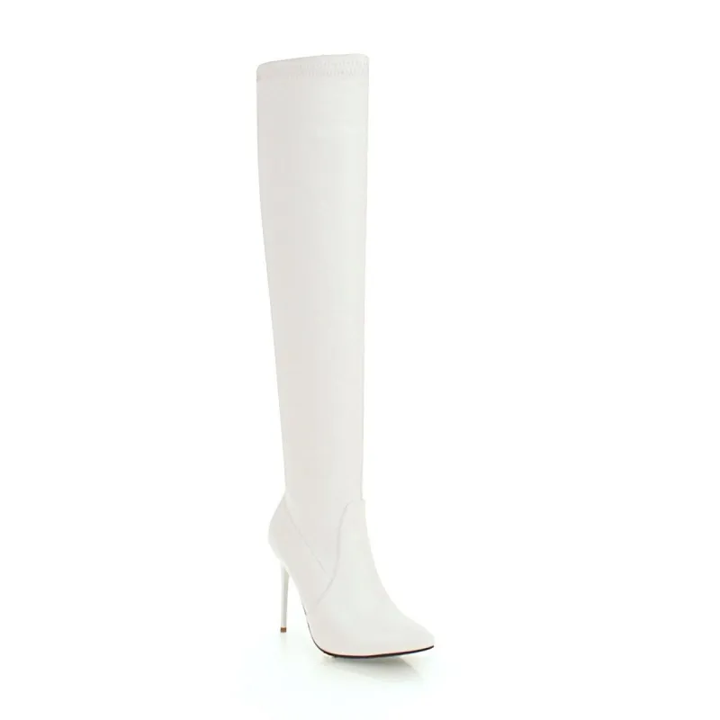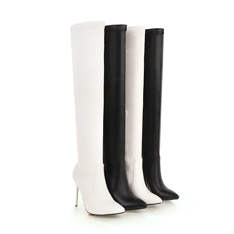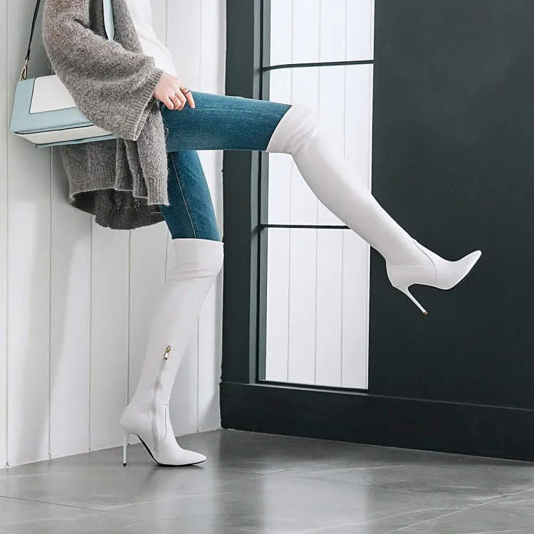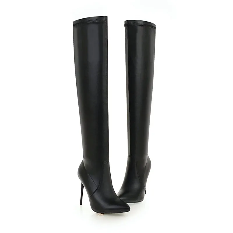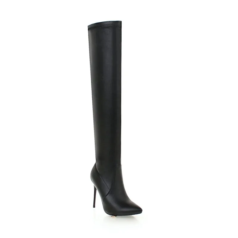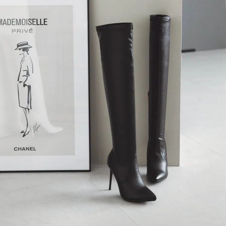 Женские высокие сапоги большого размера, женские сапоги выше колена, однотонные сапоги на высоком каблуке с внутренней молнией